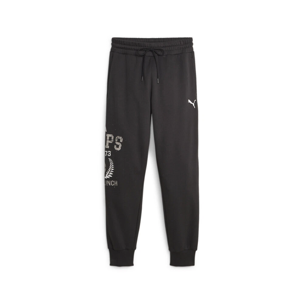 Graphic Booster Basketball Pants Product Details Regular fit Elastic waist with drawcords Side pockets Ribbed cuffs Graphic Puma Hoops print on the lower right leg/Puma Cat Logo on the left thigh Warm up or simply hang out in classic basketball style with these comfy, French terry sweatpants. They feature a large, eye-catching print on the lower leg that adds a bold mix of colors. Additional Details Color: Black Occasion: Casual Gender: Mens Age: Adult Brand: Puma
