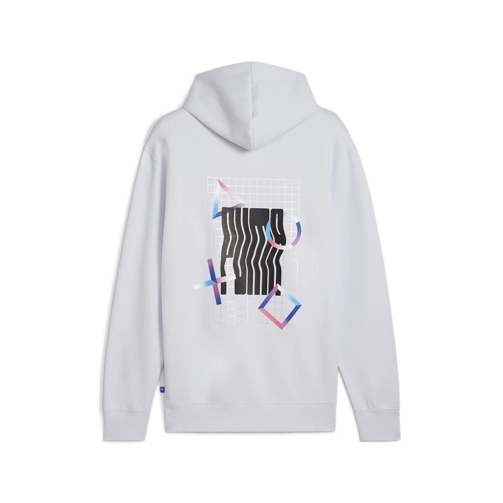 Graphic Hoodie x PS Product Details Comfort fit 320 grams per square meter, spacer fabric Hood with embroidered PS symbols Kangaroo pocket 77% Cotton/23% Polyester The Puma x PS collab is all about the two legends teaming up to push the boundaries of reality with pieces that take cues from the visionary gaming world so you can tackle all your daily quests. This hoodie features the graphic and colors that pay tribute to the PS console. Additional Details Color: Grey Occasion: Casual Gender: Mens Age: Adult Brand: Puma
