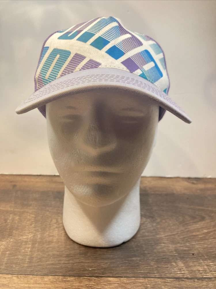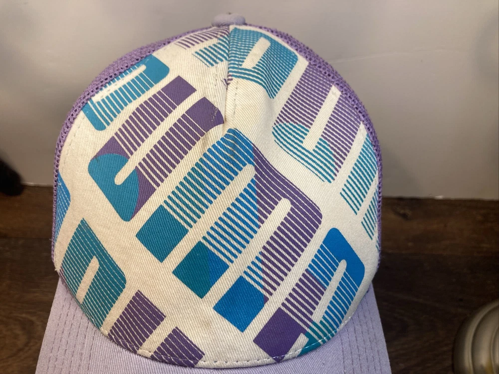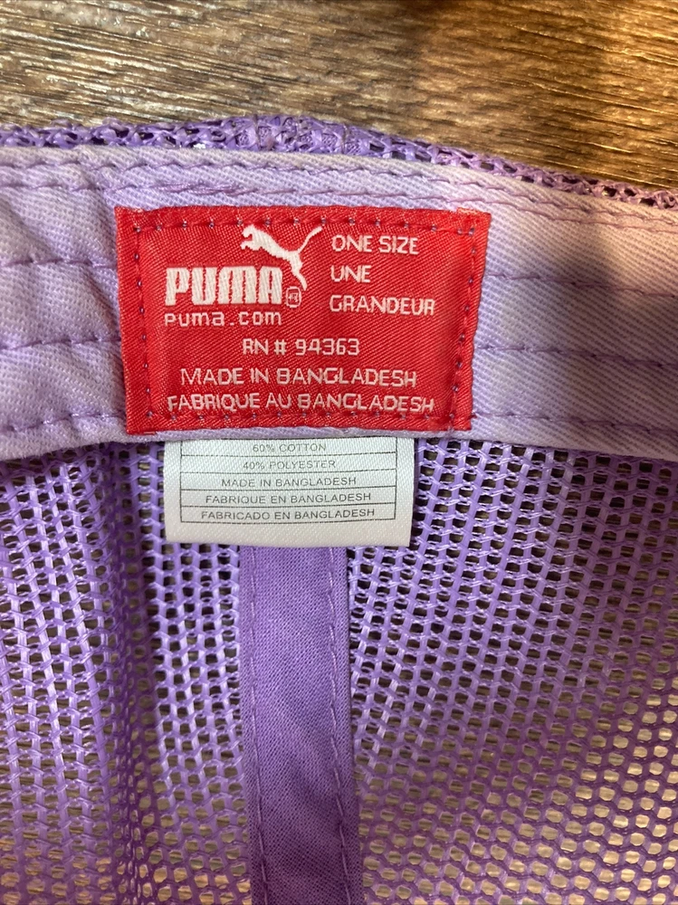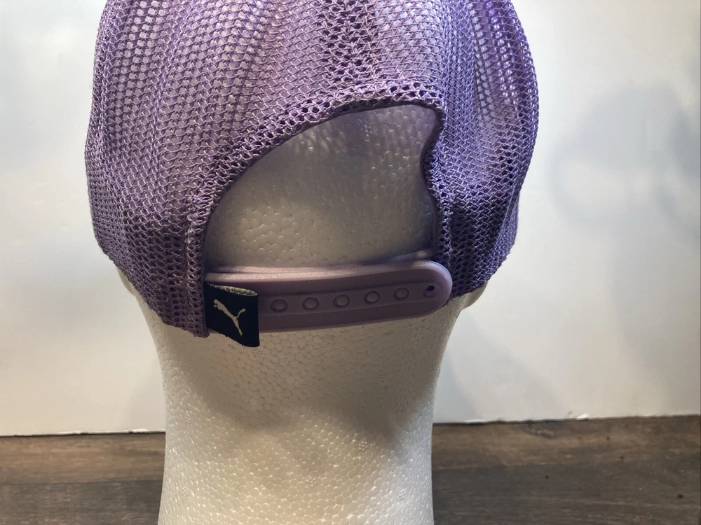 This stylish Puma snapback cap features a purple and white color scheme with a Puma print pattern, perfect for any occasion such as travel, activewear, party, casual or workwear. The cap is made of 60% cotton and 40% polyester fabric type, with accents of a snapback closure and adjustable features to fit any head size. The vintage-inspired design is perfect for those who love Puma sport theme. The cap is suitable for all seasons, including winter, summer, fall, and spring. It is branded with the Puma logo and is a great addition to any outfit. Needs shaping and cleaning