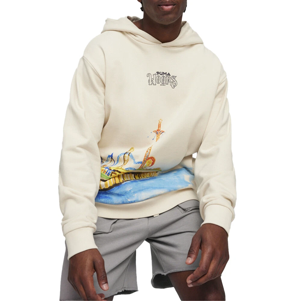 Hoops Showtime Graphic Hoodie Product Details Regular fit 400 grams per square meter, French Terry Fixed hood Puma Hoops branding adds a sporty and stylish touch 100% Cotton Push past your opponents and sink shots in style with this hoodie. Crafted for the court, its soft yet durable build and bold Puma branding lets you move freely and make an impact, shot after shot. Additional Details Color: Beige Occasion: Casual Gender: Mens Age: Adult Brand: Puma