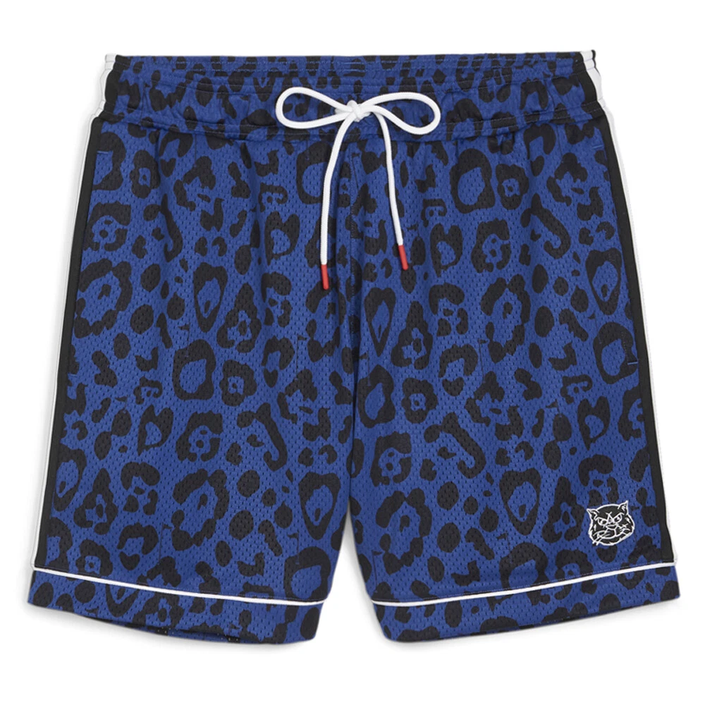 Hoops X Golf Cheetah Print Short Product Details Mid rise waistband Regular fit Mesh jersey Elastic waistband 100% polyester The worlds of PUMA HOOPS and PUMA GOLF join together for an unexpected collab that’s all about celebrating the revelry in both sports. So, tee off or drain a three in these shorts. Additional Details Color: Blue Occasion: Casual Gender: Mens Age: Adult Brand: Puma