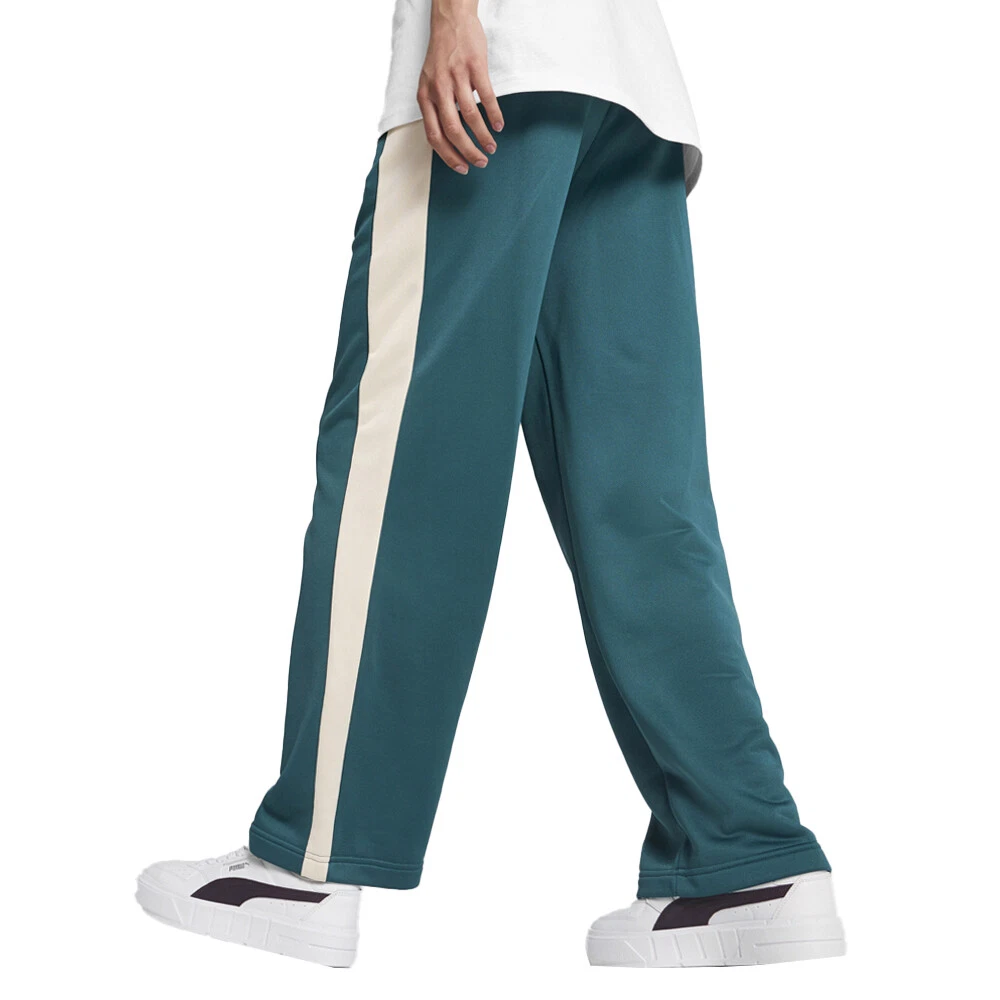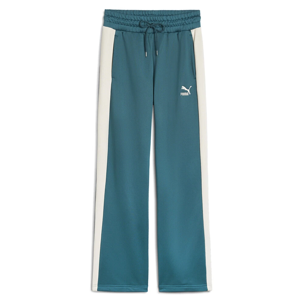 Iconic T7 Straight Leg Drawstring Track Pants Product Details Comfort fit Side pockets 320 gsm, French terry T7 panel inserts Elasticated waistband with adjustable drawcords Smoothly slide into versatile style. These ultra-comfortable knitted track pants move with you, their stretch fabric contours to your shape. Subtle side pockets and an adjustable waistband ensure easy-going luxury wherever you wander. Effortless, iconic, unmissable. Additional Details Color: Green Occasion: Casual Gender: Womens Age: Adult Brand: Puma