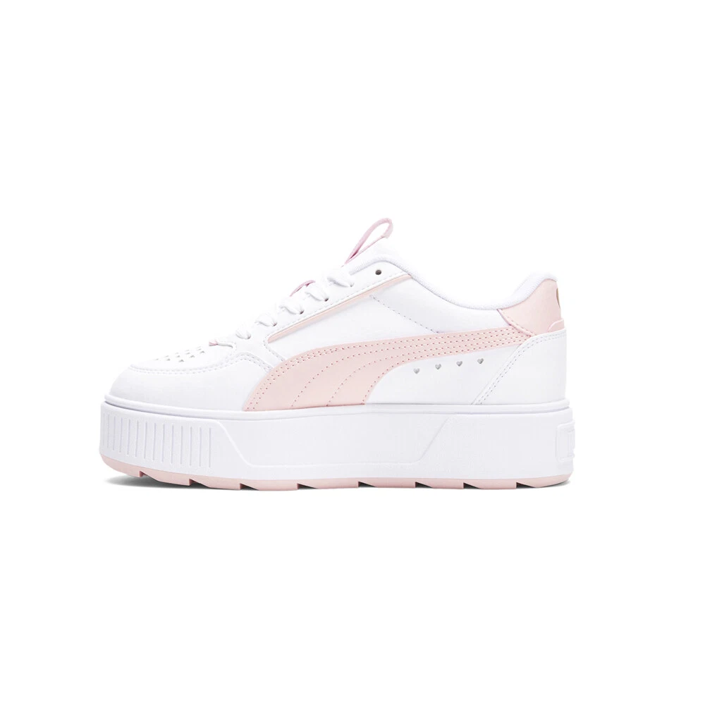 Karmen Rebelle Mini Hearts Platform Sneakers (Big Kid) Product Details Synthetic leather upper Lace up closure SoftFoam sockliner adds cushioning Thick textured rubber platform sole Complete the fit with PUMA Karmen Rebelle shoes. Featuring a smooth synthetic leather upper atop a platform sole, the Karmen Rebelle takes on a similar vibe to the platform shoes you know and love. A jagged sole adds a little character, distinguishing this sneaker as a standout fashion accessory. Additional Details Color: White Occasion: Casual Gender: Girls Age: Youth Brand: Puma