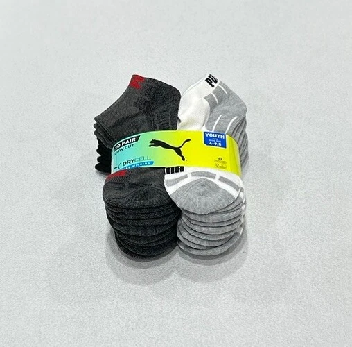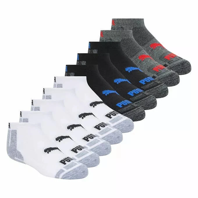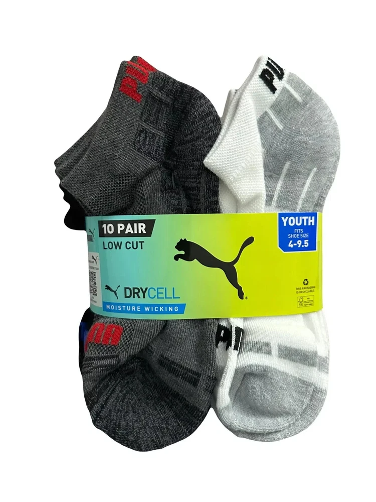 Puma Kids 10 Pair Low Cut Socks Size: Fits Shoe: 4 - 9.5 Color: Multicolor Content: 97% Polyester / 2% Rubber / 1% Spandex