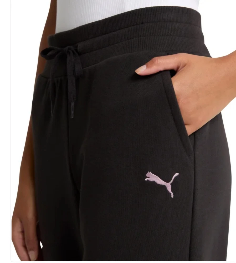 Elevate your activewear game with these Puma Ladies' Fleece Straight Leg Pants. The black color and solid pattern make them a versatile addition to your wardrobe. The pants are made of comfortable fleece fabric and feature a regular fit with a straight leg style. The pants are perfect for winter, fall, and spring seasons and come with convenient pockets for your essentials. They are machine washable for easy maintenance. The pants are ideal for sports enthusiasts and have a logo theme to showcase your love for the brand. Available in size L, these sweatpants are a must-have for any woman's activewear collection.
