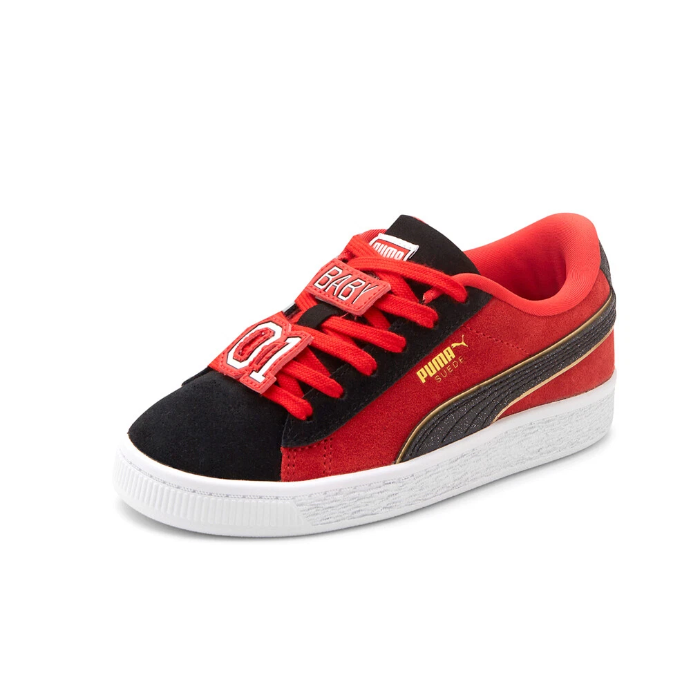 Laughing Out Loud Surprise x Suede Lace Up Sneakers (Toddler-Little Kid) Product Details Suede upper Lace up closure Cushioned insole Rubber outsole Calling all the little queens to play! Let your little ones enjoy hours of excitement and surprise with the PUMA Suede Laughing out loud Surprise. PUMA and Laughing out loud SURPRISE! have joined hands to help your tiny dolls have fun in style and comfort. Decked up with bold colors and authentic graphics, these sneakers will give your baby girls’ rotation a playful makeover. Watch your tiny girls make big strides with the PUMA Suede Laughing out loud Surprise. Additional Details Color: Black, Red Occasion: Casual Gender: Boys Age: Toddler Brand: Puma