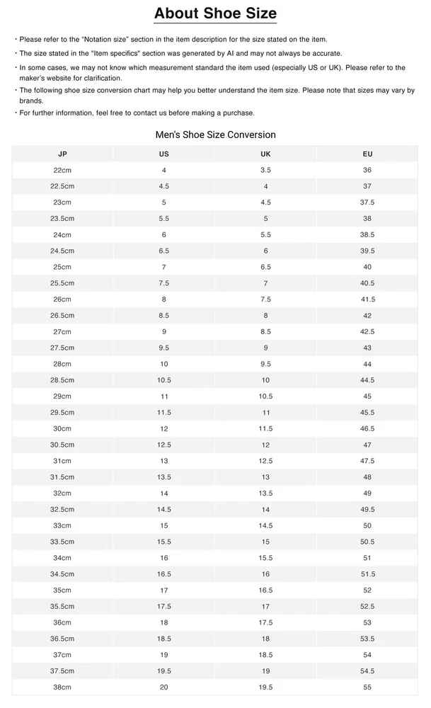 • Before purchasing, please read this page in conjunction with the notes at the bottom of the page, and by placing an order and making payment, you agree to be bound by the product conditions and notes. • International shipping will be facilitated through our central shipping center in Japan. Please allow approximately 10 business days for us to handle the item, from dispatching it from our local store to preparing it for international shipping in our central shipping center. • Tracking number will be provided only after the item reaches our central shipping center in Japan. • Item details and descriptions have been translated by AI, so occasional mistakes may occur. If you encounter any issues, please don't hesitate to reach out to us. PRODUCT INFORMATION Brand PUMA Style Sneaker Department Men Type Athletic Color Beige Product Line Others Character Others Vintage No Customized No Theme Classic Model Others Country/Region of Manufacture Unknown Shoe Shaft Style Low Top Upper Material See Description US Shoe Size 7 UK Shoe Size 6.5 EU Shoe Size 40 Others ■Product name [Used] Puma low-top sneakers SUEDE CLASSIC+ CRFTD 359963-03 men's SIZE 25 (S) PUMA ■Damage Details There is dirt on the surface and midsole There is dirt and wear on the outsole There is a thread on the inside ■Item Details Brand: Puma Model: SUEDE CLASSIC+ CRFTD Accessories: - *Since this is a used item, accessories such as ribbons and replacement belts may not be available when purchasing a new product. Part Number: 359963-03 Category: Mens-Fashion-Shoes-Sneakers-S Color: Beige ■Size Details Notation size: 25 Measured size: S Insole width 10cm (3.94 in) About the size Measurements are taken while lying flat. *Two sizes are listed: the size shown (size announced by the manufacturer) and the measured size (size measured by our company). *We apologize for the inconvenience, but we do not re-measure products once they have been posted. *Please allow slight differences due to measurement size. Material: - *Materials may be described in product images Control number: ITBKBL6N9UKW [Please note] *Negotiations for price reductions are not accepted. About Us BOOKOFF is one of Japan's leading second-hand chain, with more than 700 stores across the country. We offer a wide selection of premium branded items, including designer bags, wallets, jewelry, watches, fashion clothing, and more. All items will be thoroughly inspected, carefully packed, and shipped directly from Japan. BOOKOFF is also a member of the AACD (Association Against Counterfeit Product Distribution), an organization which aims to prevent the distribution of counterfeit and fraudulent products, hence buyers can purchase genuine brand items with confidence at our store. All of our items are selected and authenticated by professional authenticators to ensure their authenticity. About Payment • Only eBay managed payments are accepted. • We do not do transactions outside of eBay. Shipping & Taxes • Free Shipping Worldwide. • All items will be shipped via Japan Post with tracking service (EMS or ePacket). • All orders will be shipped from Japan to the registered address on the buyer's eBay account. • Shipments may be delayed due to bad weather, public holidays, customs office delays, and other conditions beyond our control. • All customs duties, import taxes or related fees occurred during shipping are the responsibilities of the buyer. If you have any concerns, please inquire directly with your local customs office before making a purchase. Return & Cancellation Policy • All listed items are also available at our retail store and multiple online platforms in Japan. In the event that an item is out of stock or sold, we will issue a cancellation along with a full refund. • If you wish to return an item for a refund, please contact us directly before initiating a return or opening a case. • For damaged items or discrepancies with the item description, please reach out to us directly within 10 days of receiving the item, providing pictures of the damaged area or issues. • Unless the item is damaged or does not match its description, buyers will be responsible for the return shipping fee. > All returns must be shipped to our address in Japan with a tracking number. > Refunds will be processed once the returned item has arrived safely. • Buyers who violate eBay policies or misuse eBay's Money Back Guarantee will be reported and blocked from future purchases. click here to see our store