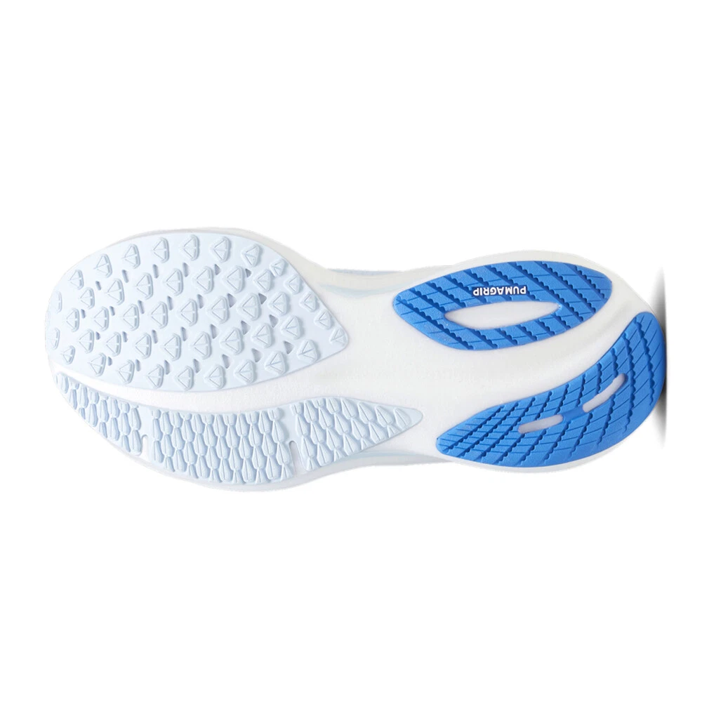 Magnify Nitro 2 Running Shoes Product Details Engineered mesh upper for breathability Molded heel collar for enhanced heel fit and comfort NIitro foam midsole provide superior responsiveness and cushioning in a lightweight package Pumagrip rubber outsole designed for all-surface traction Rubber placements on the heel for durability It’s all about a comfortable ride with the Magnify Nitro, and this season the model is retooled with an engineered mesh upper and even more Nitro. Constructed with the thicket piece of nitrogen-injected Nitro foam in the midsole, this shoe is built for long runs where comfort is your top priority. An extra amount of rubber placements is tossed in for added durability while you log miles. Additional Details Color: Blue Occasion: Casual Gender: Womens Age: Adult Brand: Puma