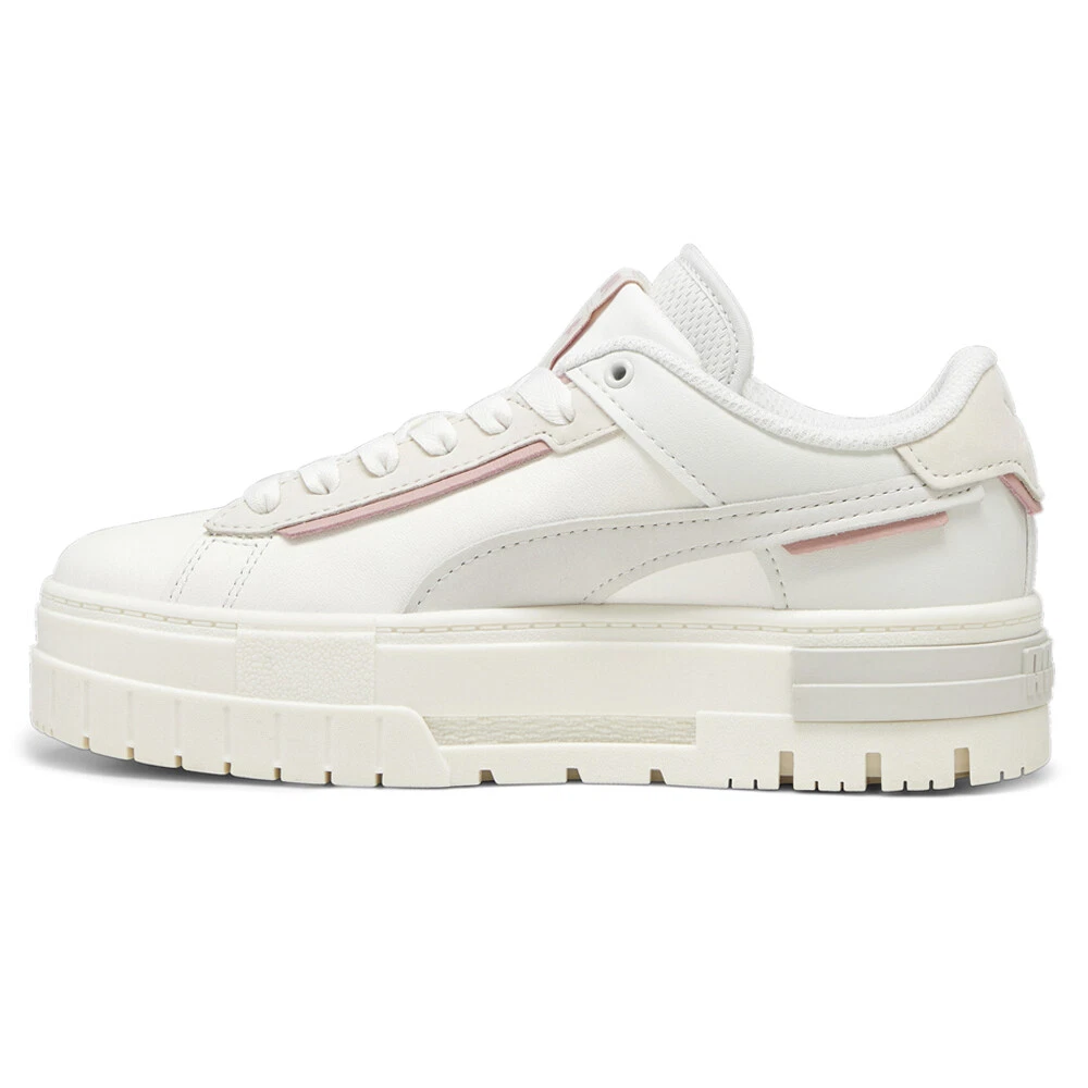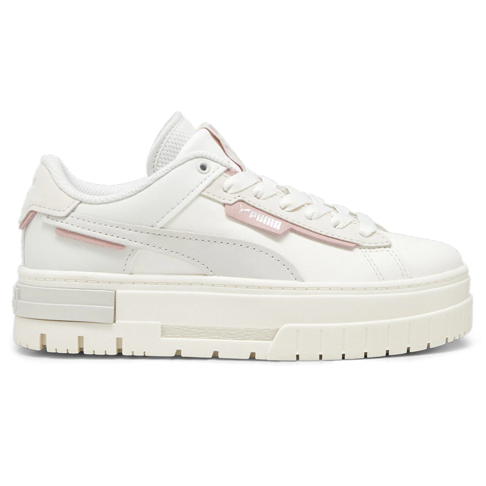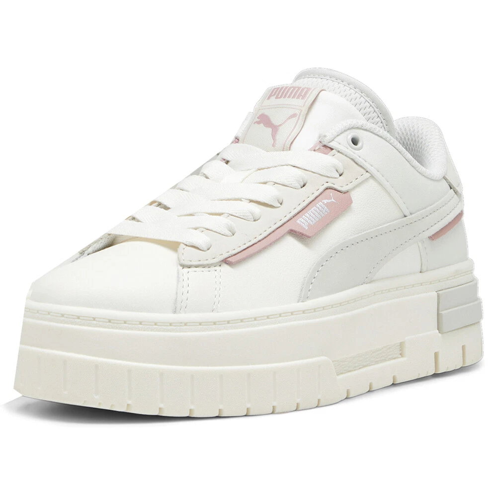 Mayze Crashed Premium Platform Sneakers Product Details Leather quarter panel, vamp and underlays on the eyestay, Formstrip and heel cap Synthetic back quarter panel and top tongue Nubuck Formstrip, eyestay and heel cap Woven PUMA label on top tongue IMEVA and rubber midsole Mayze just got a bold new look. Mayze Crashed translates a glitched aesthetic through the upper and re-tooling of the original Mayze silhouette, resulting in a rebellious new design that’s ready to break the rules. We've kitted this version with a leather base with a nubuck Formstrip. Additional Details Color: White Occasion: Casual Gender: Womens Age: Adult Brand: Puma
