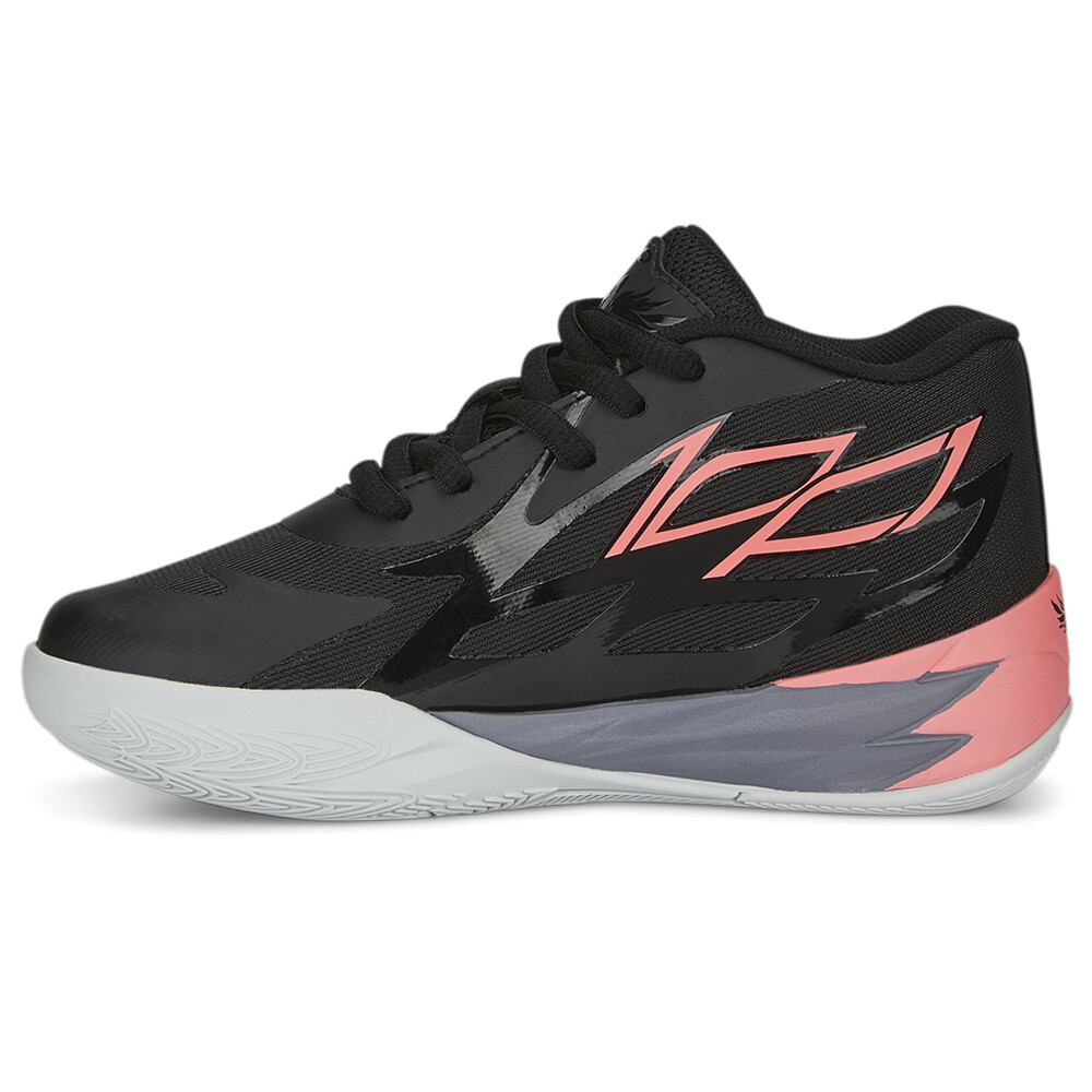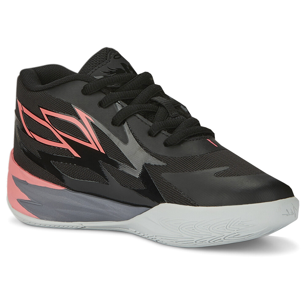 Mb.02 Flare Basketball Shoes (Little Kid-Big Kid) Product Details Engineered mesh upper Branding on the heel and tongue RARE' graphic on the outsole PUMA Kids: Recommended for young kids between 4 and 8 years Non-slip rubber outsole An update to last season’s model, it keeps the flames – inspired by the guard’s rocket ship tattoo – across the upper, so your little one will be throwing down dunks, draining threes, and dropping dimes before you know it. Additional Details Color: Black Occasion: Casual Gender: Boys Age: Youth Brand: Puma
