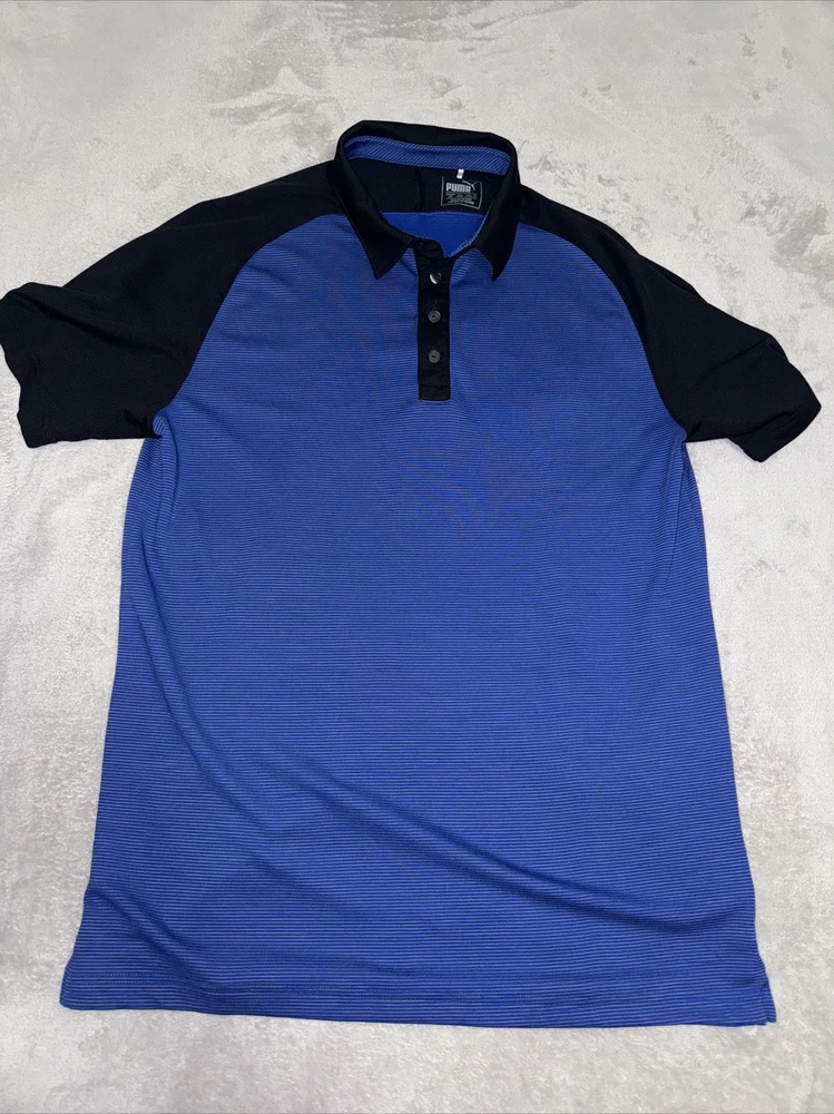 Puma Mens Activewear Golf Short Sleeve Polo Shirt Size Large L Blue And Black