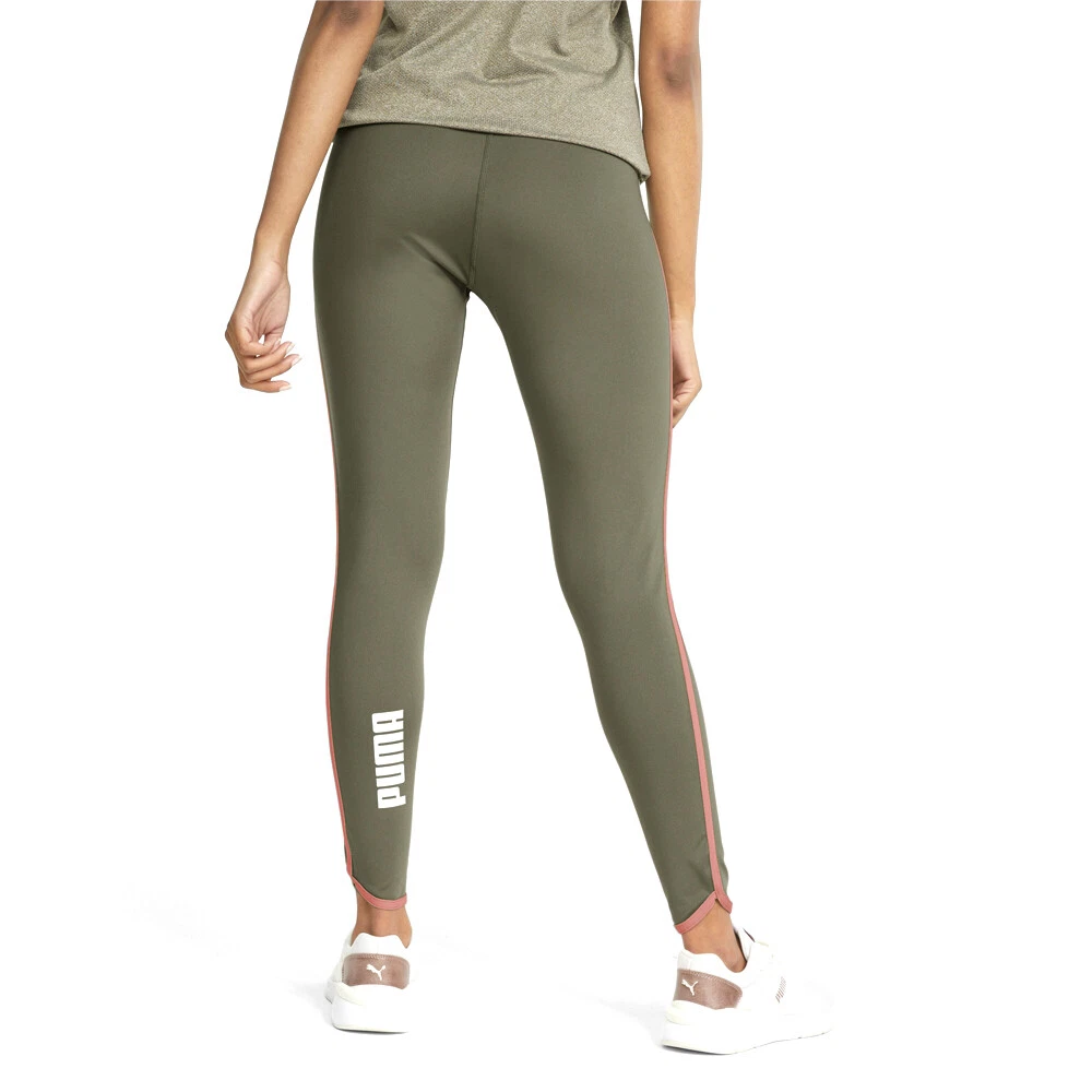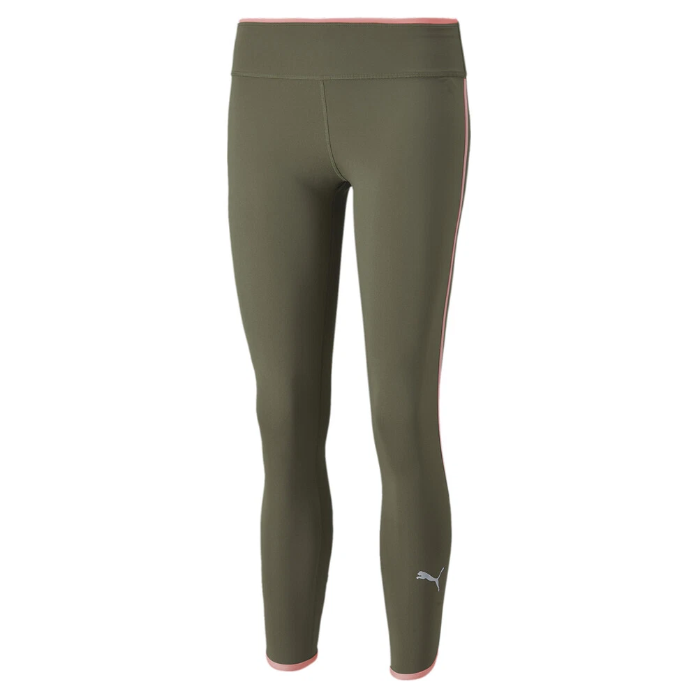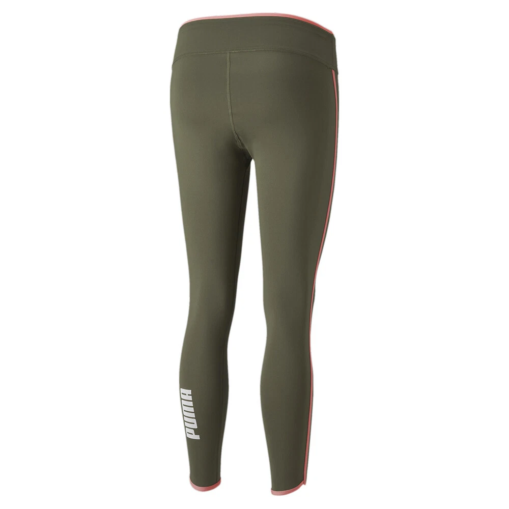 Modern Sports High Waist 7/8 Leggings Product Details Tight fit Elastic waistband Puma Cat logo on bottom left leg 85% polyester, 15% elastane Can't go wrong with a classic. The Modern Sports High-Waisted 7/8 Tights have a sleek and sophisticated design featuring a pop of color trim for a little added excitement. Additional Details Color: Green Occasion: Casual Gender: Womens Age: Adult Brand: Puma