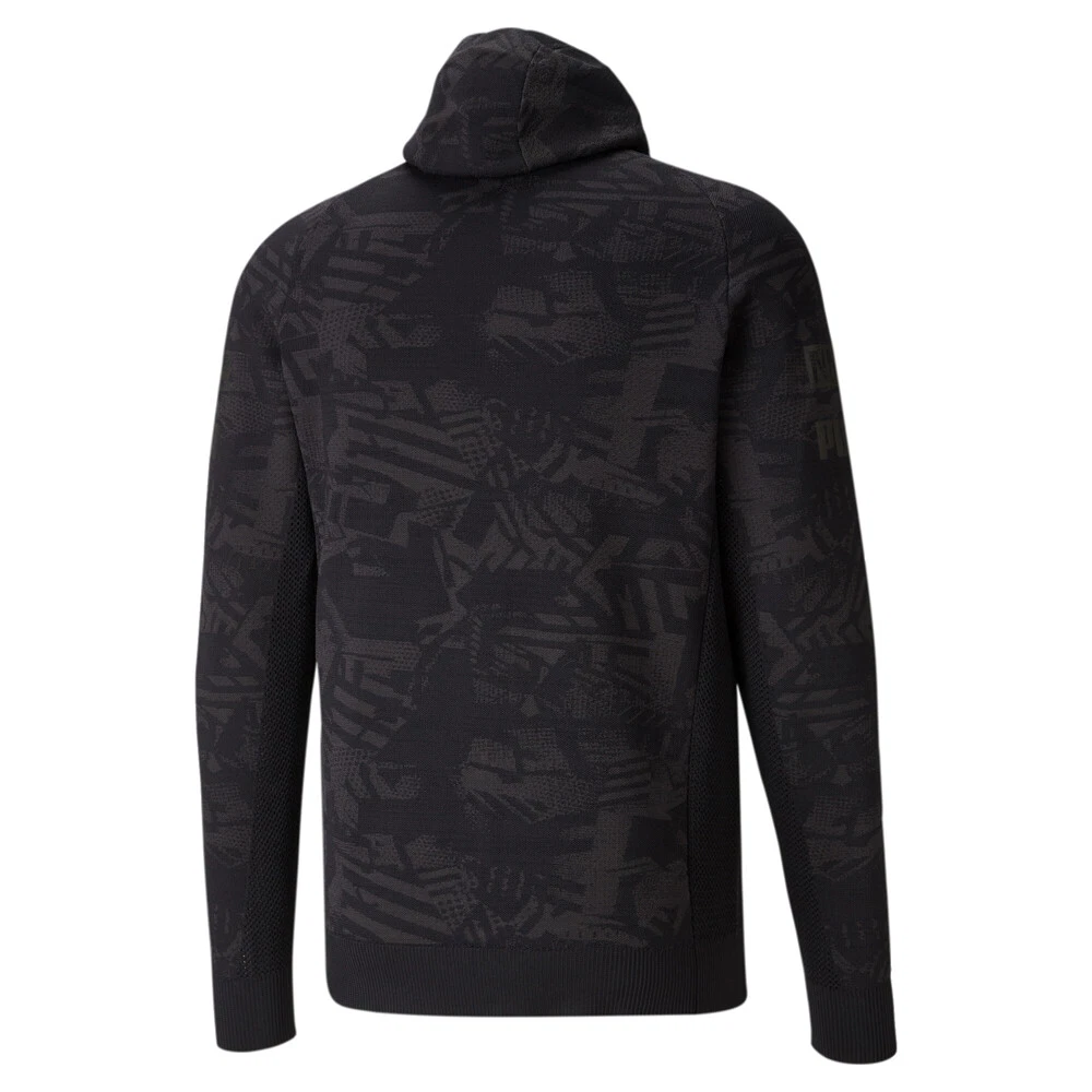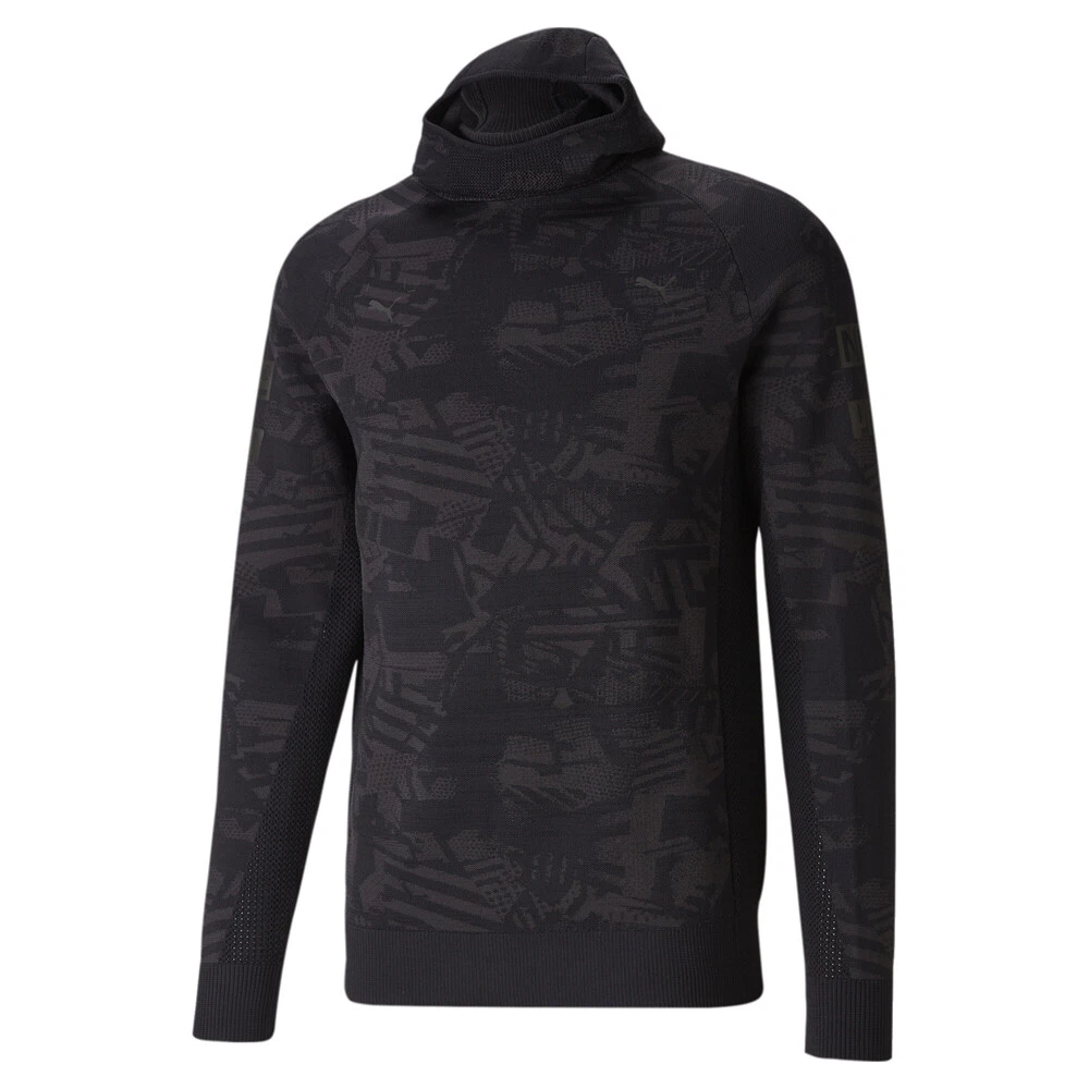 Nemen X Knit Mock Neck Sweatshirt Product Details Regular fit Mesh structure beneath sleeves and side panels Balaclava-inspired hood Ribbed cuffs and hem 66% polyester, 23% nylon, 11% elastane The PUMA x NEMEN collection combines the worlds of sportswear and extreme functionality, with technical materials giving a look that’s unlike anything else in the PUMA lineup. This sweatshirt has an engineered all-over print, as well as a balaclava-inspired hood with a smaller than usual opening. Additional Details Color: Black Occasion: Casual Gender: Mens Age: Adult Brand: Puma