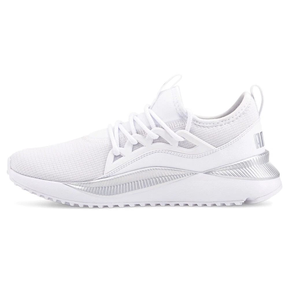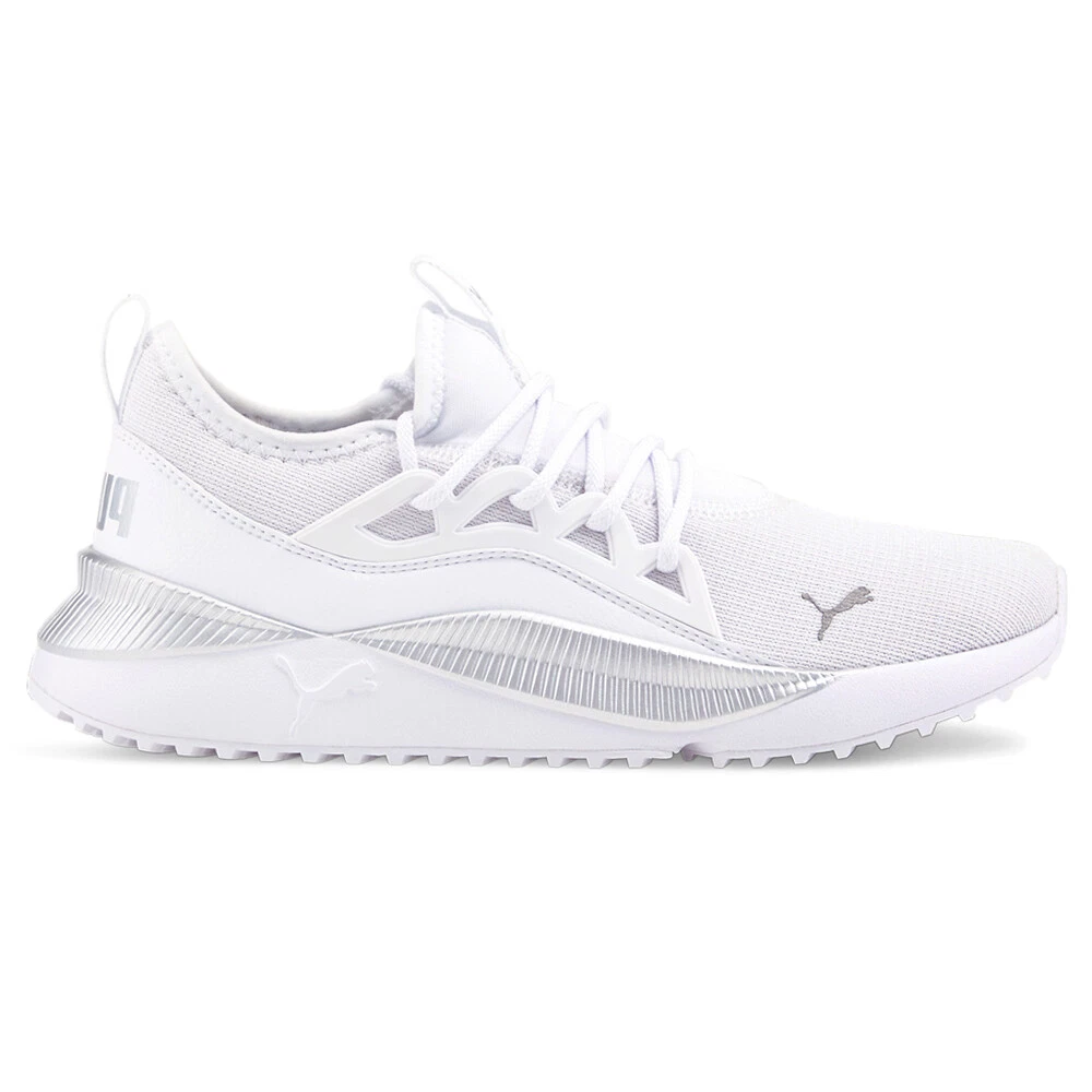 Pacer Future Allure Lace Up Sneakers Product Details Mesh upper Lace up closure EVA midsole Rubber outsole The future sure looks comfy in the Pacer Future women's sneaker from PUMA. With a breathable knit mesh upper flanked by a midfoot lace-through cage for added support, this slip-on sneaker also features a sock collar and PUMA-branded pull tab on the tongue. The EVA midsole and rubber outsole provide lightweight support for greater energy return every step of the way. Additional Details Color: White Occasion: Casual Gender: Womens Age: Adult Brand: Puma
