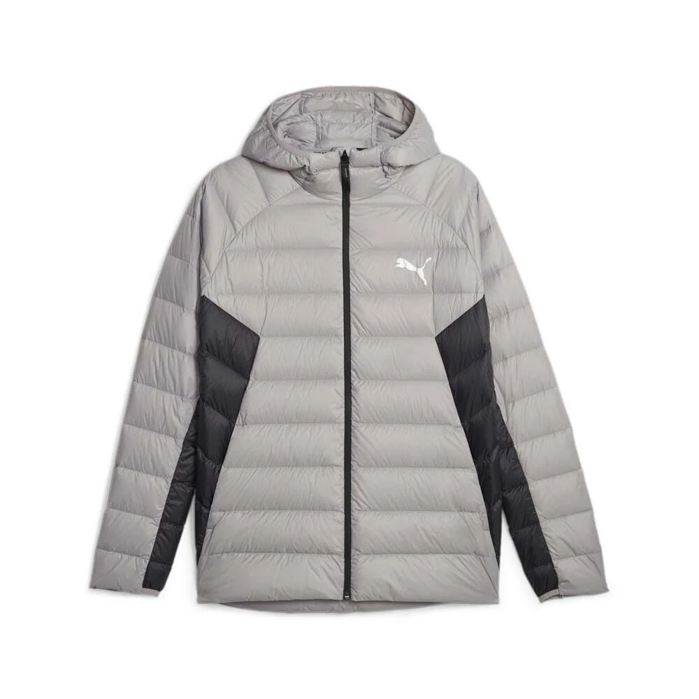Packlite Hooded Down Full Zip Jacket Product Details Slim fit Signature tape on the hood and back Hooded neckline Full-zip closure Side seam pocket into which the jacket can be packed down Introducing your toughest tool against the elements: the jacket condenses maximum insulation into the minimum possible space, making it easy to keep on hand and stay prepared. The whole hooded jacket packs down into its own pocket, without compromising on its weather-proof properties, which include heat resistant insulation and a water-repellent finish. Additional Details Color: Grey Occasion: Casual Gender: Mens Age: Adult Brand: Puma