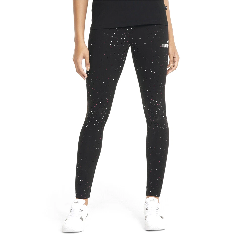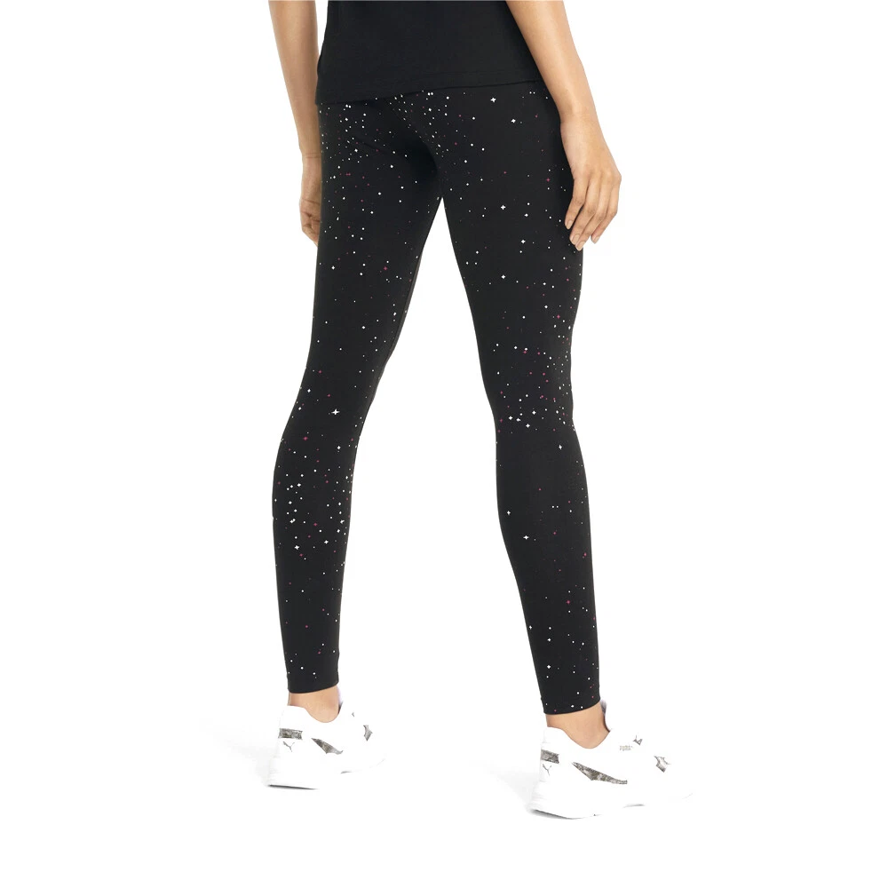 Power All Over Print Stardust Graphic 7/8 High-Waisted Leggings Product Details High rise elasticated waistband Graphic all-over print Sustainable materials 95% cotton, 5% elastane Featuring a tight fit, high waist, bold PUMA branding and all-over starlight graphics, these luxe leggings are attention-seeking in all the best ways. Additional Details Color: Black Occasion: Casual Gender: Womens Age: Adult Brand: Puma