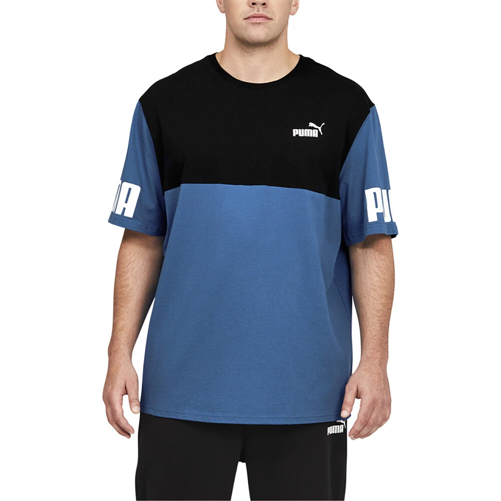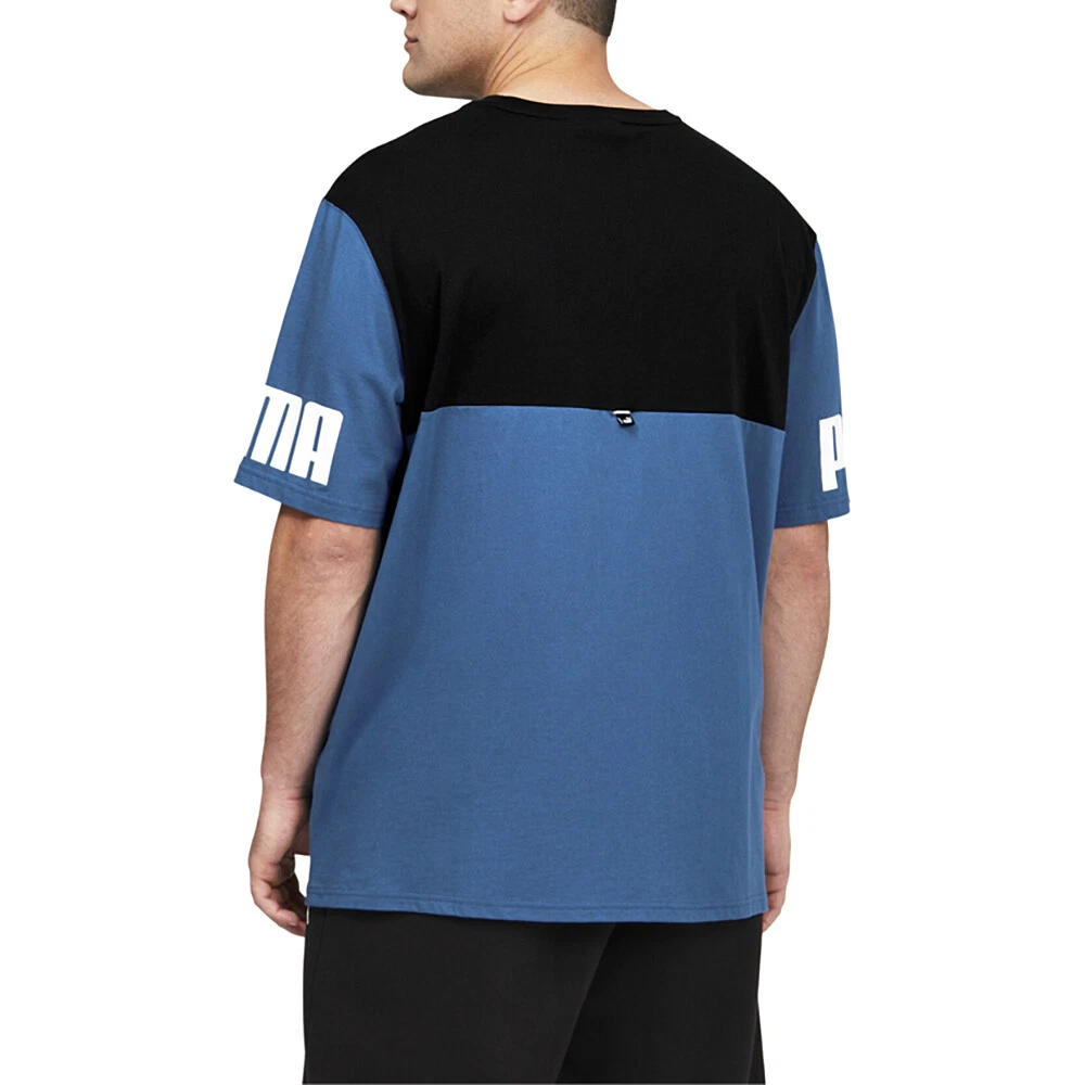 Power Colorblock Crew Neck Short Sleeve T-Shirt (Big &Tall) Product Details Crew neck Short sleeve PUMA logo 70% cotton, 30% polyester Make a power move in your comfort game. The PUMA Power Colorblock Men's Tee maximizes comfort without minimizing style. Additional Details Color: Black, Blue Occasion: Casual Gender: Mens Age: Adult Brand: Puma