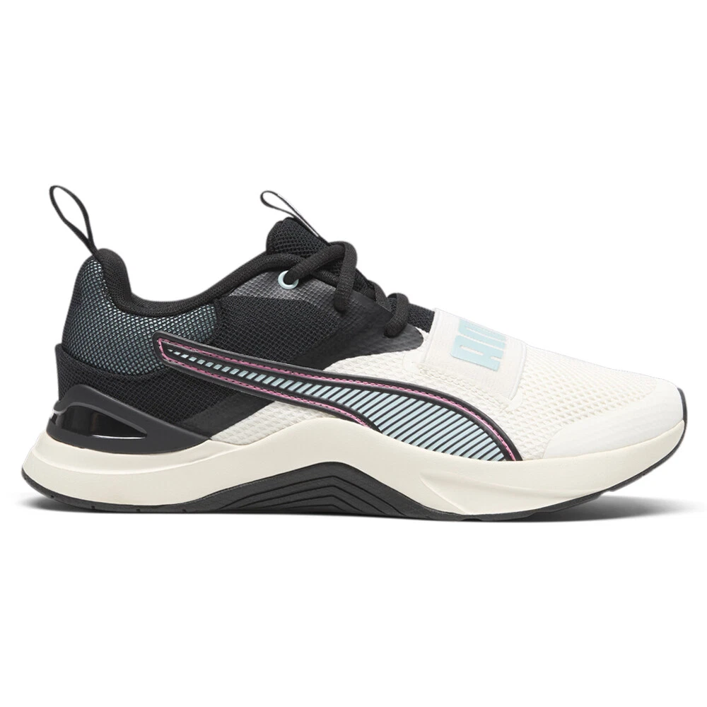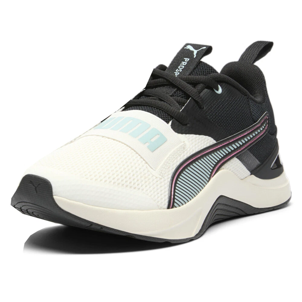 Prospect Training Shoes Product Details Textile upper Lace up closure ProFoam Ethylene-vinyl acetate midsole designed to cushion your landing and propel your next step Thermoplastic polyurethane heel clip for stability Zoned rubber outsole The Prospect takes inspiration from Puma's Fuse 3.0 but brings a more low key design. Puma's ProFoam midsole and Soft Foam Plus sockliner will help your feet stay comfortable all day. The heel features a thermoplastic polyurethane clip for heel stability and also a bold color pop. Additional Details Color: Black, White Occasion: Casual Gender: Womens Age: Adult Brand: Puma