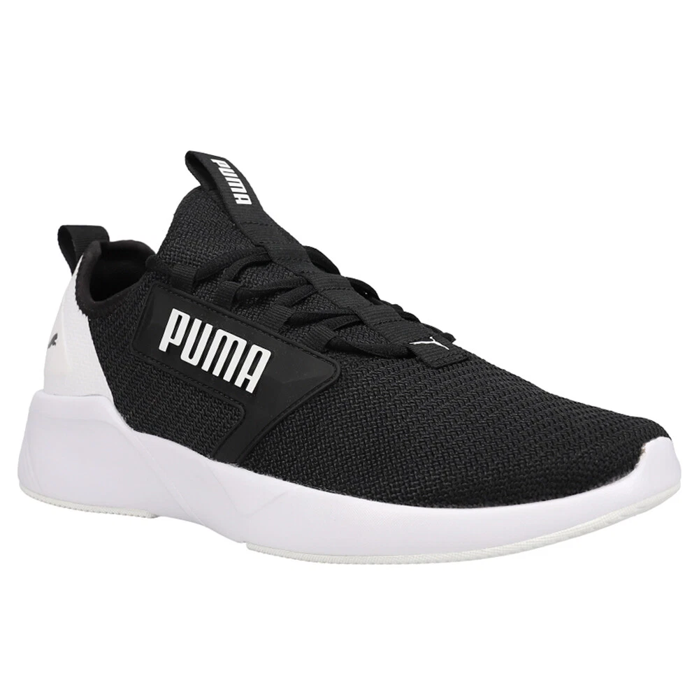 Retaliate Block Running Shoes Product Details Textile upper Full-length EVA midsole features stylish paint lines Cushioned footbed for optimum comfort Zoned rubber on the outsole provides traction All new Retaliate adds a fresh look to Puma's Contemporary Essentials line. The upper features a modern burrito construction in the collar, ensuring a perfect fit and enhancing ease of entry. Bold PUMA branding comes across the midfoot rubber mold, while a material split in the toe adds versatility and material depth. Additional Details Color: Black Occasion: Casual Gender: Mens Age: Adult Brand: Puma