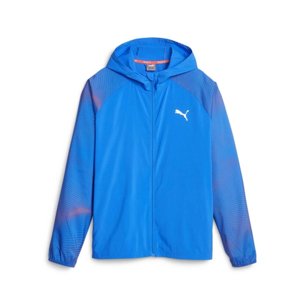 Run Favorite Full-Zip Jacket Product Details Regular fit Integrated hood with zip guard Full-zip closure Elastic cuffs Two side seam pockets A go-to for everyday runners, this jacket features ergonomic cutlines to help you move without restriction and moisture-wicking technology to keep you comfortable when you're out on a chilly morning jog. Additional Details Color: Blue Occasion: Casual Gender: Mens Age: Adult Brand: Puma