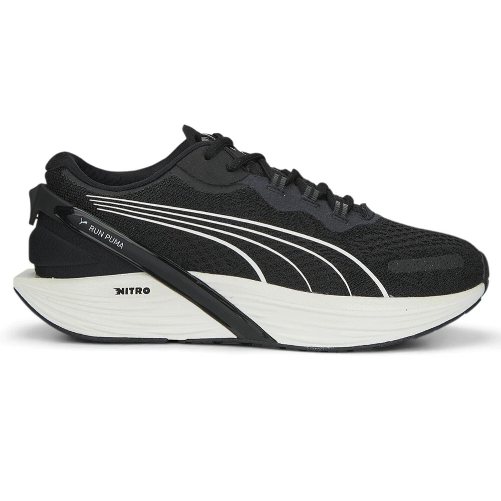 Run XX NITRO Nova Shine Running Shoes Product Details Engineered mesh upper that provides breathability so you can stay cool and comfortable Lace up closure for a secure fit NITRO foam midsole for a lightweight and comfortable ride in every step Durable rubber outsole that provides optimal traction and durability Named for the woman-specific double X chromosome DNA sequence, the Run XX NITRO running shoes stands behind our RUN FOR HER motto with a progressive, female-specific design. The running shoe features an updated fit that hugs a woman’s foot at the heel, instep, and arch, as well as a firmer NITRO midsole that provides cushioning over any distance. RUNGUIDE rounds things off by promoting proper alignment and increased stability. Additional Details Color: Black Occasion: Casual Gender: Womens Age: Adult Brand: Puma