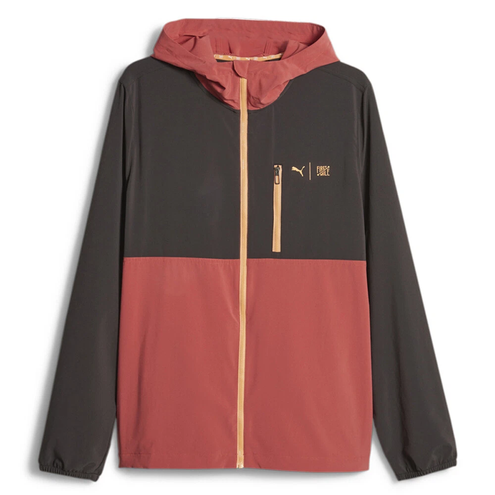 Running Full Zip Jacket x FM Product Details Regular fit 3-piece hood Full-zip closure Locker loop hanger Front zip chest pocket and on-seam hand pockets for storage With PUMA x FM we strengthen our planet together. The collection's styles are crafted from FM yarns that are crafted from plastic bottles in Haiti, Honduras and Taiwan. The running jacket is made from a lightweight taffeta fabric and with a sweat-wicking finish to keep you comfortable during those long runs. Additional Details Color: Black Occasion: Casual Gender: Mens Age: Adult Brand: Puma