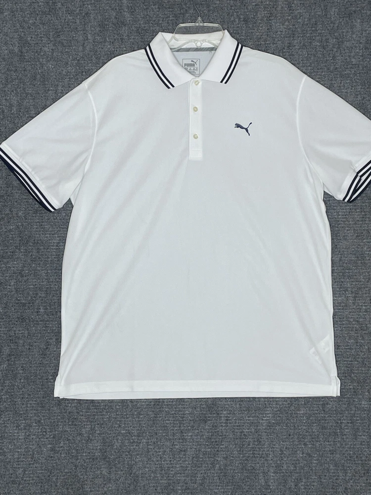 Puma Shirt Mens Polo Large White Short Sleeve Golf Tennis Walking Casual