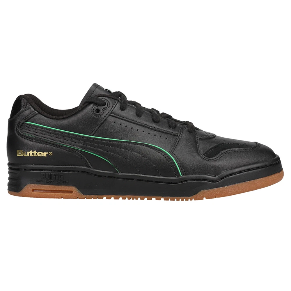 Slipstream Lo X Butter Goods Lace Up Sneakers Product Details Puma Slipstream Lo x Butter Goods Metallic gold "Butter" logo at lateral heel Upper: 100% Leather; Lining: 100% Textile Outersole: 100% Rubber Puma collaborate with Australian brand Butter Goods to bring us the Slipstream Lo. The vintage Slipstream Lo is an OG basketball model with a leather fabrication, an OG color palette and metallic detailing giving it a skateboarding spin. Additional Details Color: Black Occasion: Casual Gender: Mens Age: Adult Brand: Puma