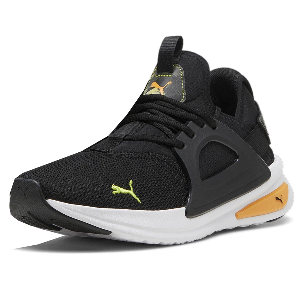 Softride Enzo Evo Retrofuture Running Shoes Product Details Mesh with TPU caging and clamshell construction Lock down fit and interesting detail Laces Zoned Rubber A mashup of PUMA's SOFTRIDE and Enzo lines, the SOFTRIDE Enzo brings the extreme cushioning of the SOFTRIDE midsole to the progressive and bold Enzo design that includes a seasonal, retro look. Additional Details Color: Black Occasion: Casual Gender: Mens Age: Adult Brand: Puma