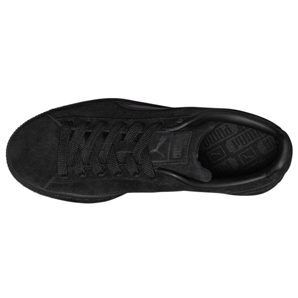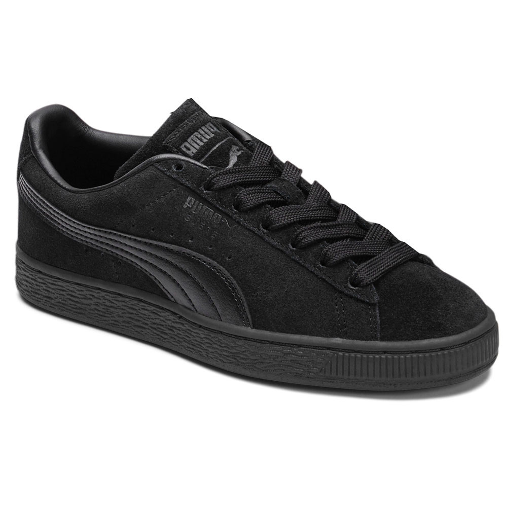 Suede Classic Lifestyle Lace Up Sneakers (Big Kid) Product Details Suede upper Lace up closure Rubber midsole Rubber outsole for durable grip and traction The Suede has been kicking around for a long time. From ‘60s basketball warm-up shoe to ‘90s hip hop legend, it’s been worn by the icons of every generation and it’s stayed classic through it all. For the Suede Classic Lifestyle, Puma wanted to put the "class" in "classic". So they added a sleek leather Puma Formstrip on top of the rich suede upper and black-on-black color palette for a look that is classic, elevated. Additional Details Color: Black Occasion: Casual Gender: Boys Age: Youth Brand: Puma