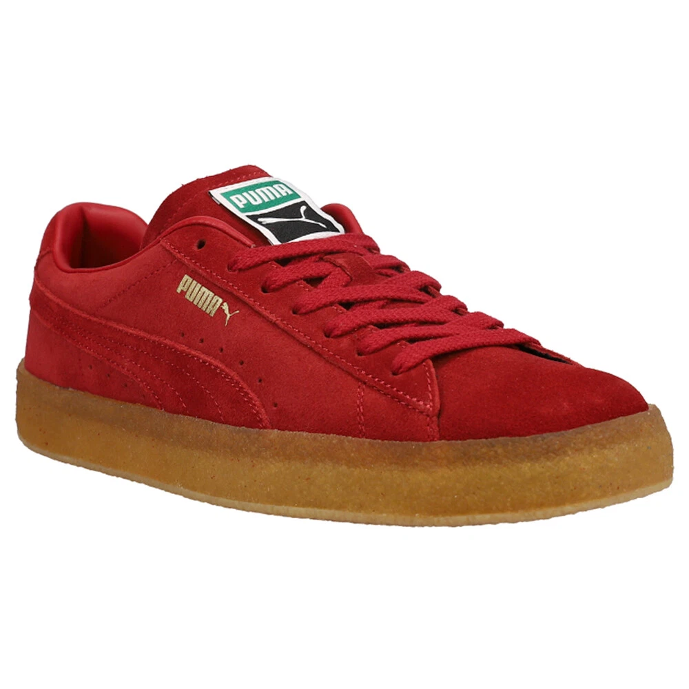 Suede Crepe Lace Up Sneakers Product Details Suede upper Lace closure Padded collar Cushioned midsole Rubber outsole PUMA’s iconic Suede style has been changing the game for more than 50 years – from Tommie Smith’s victory stand protest at the 1968 Olympics to the b-boys of 1980s NYC. Its continued evolution sees it retaining the much-loved suede upper design here, but we've switched out the legendary outsole for a real crepe sole. Crepe is a natural, sustainable material that is celebrated for supreme comfort and blends seamlessly with the exceptional quality suede upper. And so, the reign of the finely crafted Suede continues… Additional Details Color: Red Occasion: Casual Gender: Mens Age: Adult Brand: Puma