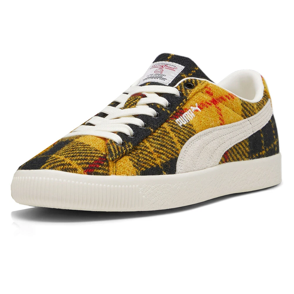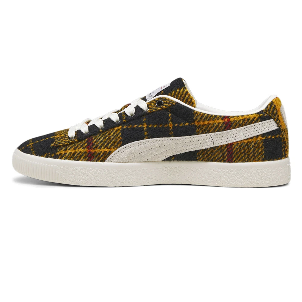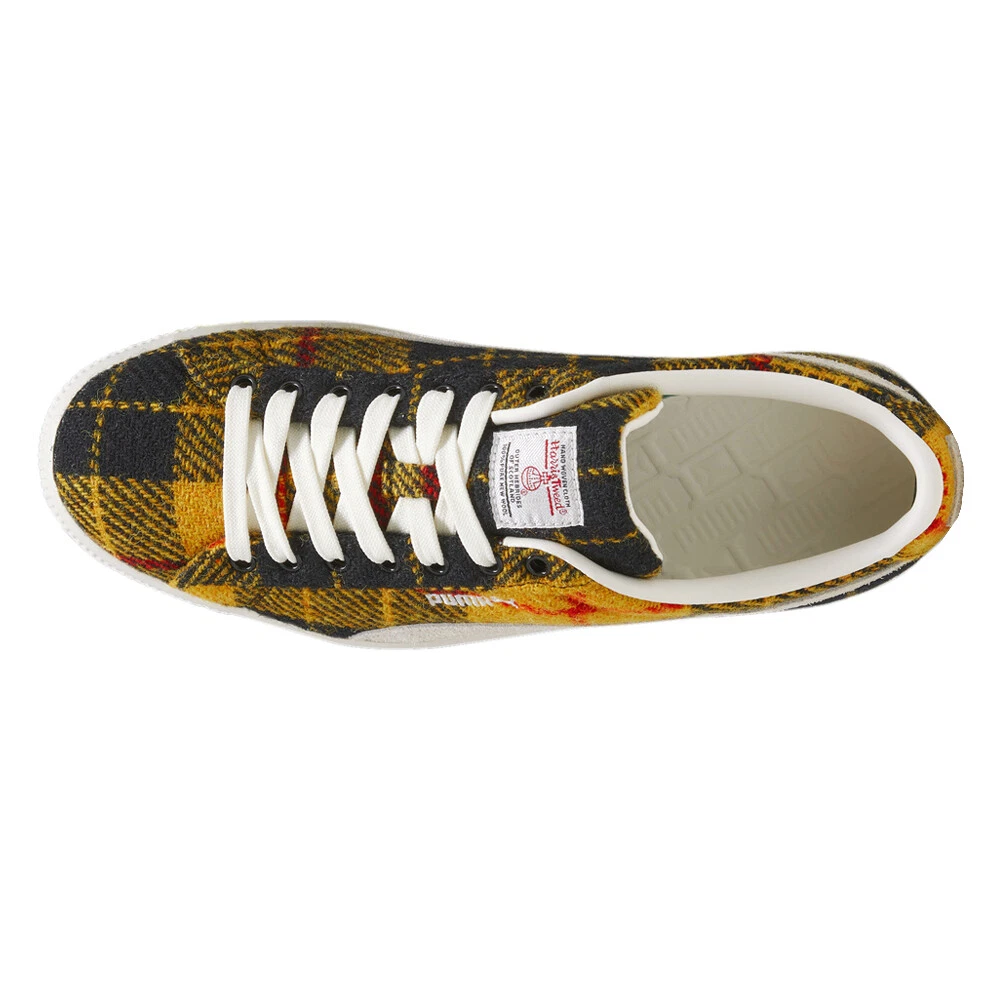 Suede VTG Harris Tweed Lace Up Sneakers Product Details Harris tweed tartan wool vamp, quarter and heel Hairy suede Formstrip Harris tweed tartan wool tongue Deboss Cat logo Rubber sole With its huge impact on footwear culture, Puma's most iconic trainer first hit the scene in 1968 and has been worn by icons of every generation since. With the Suede VTG, Puma is keeping the model as close as possible to the OG, including a shorter vamp, no Suede logo on the quarter and raw edge tongue construction. This execution features a Harris Tweed tartan wool upper and hairy suede Formstrip, as well as a Harris Tweed woven tongue label. Additional Details Color: Black, Yellow Occasion: Casual Gender: Mens Age: Adult Brand: Puma