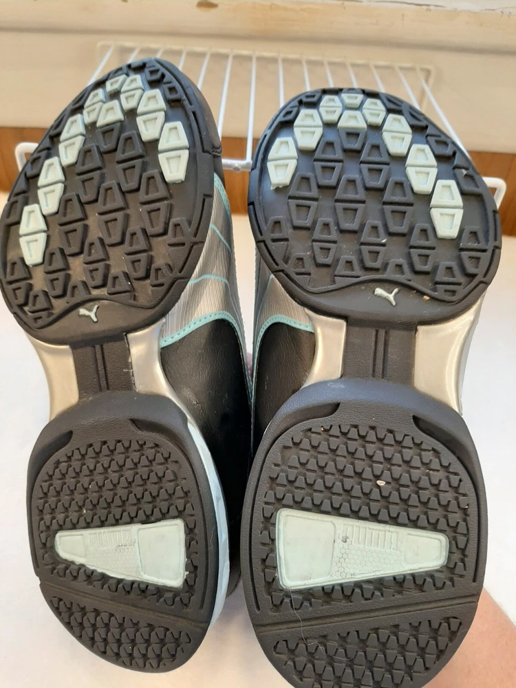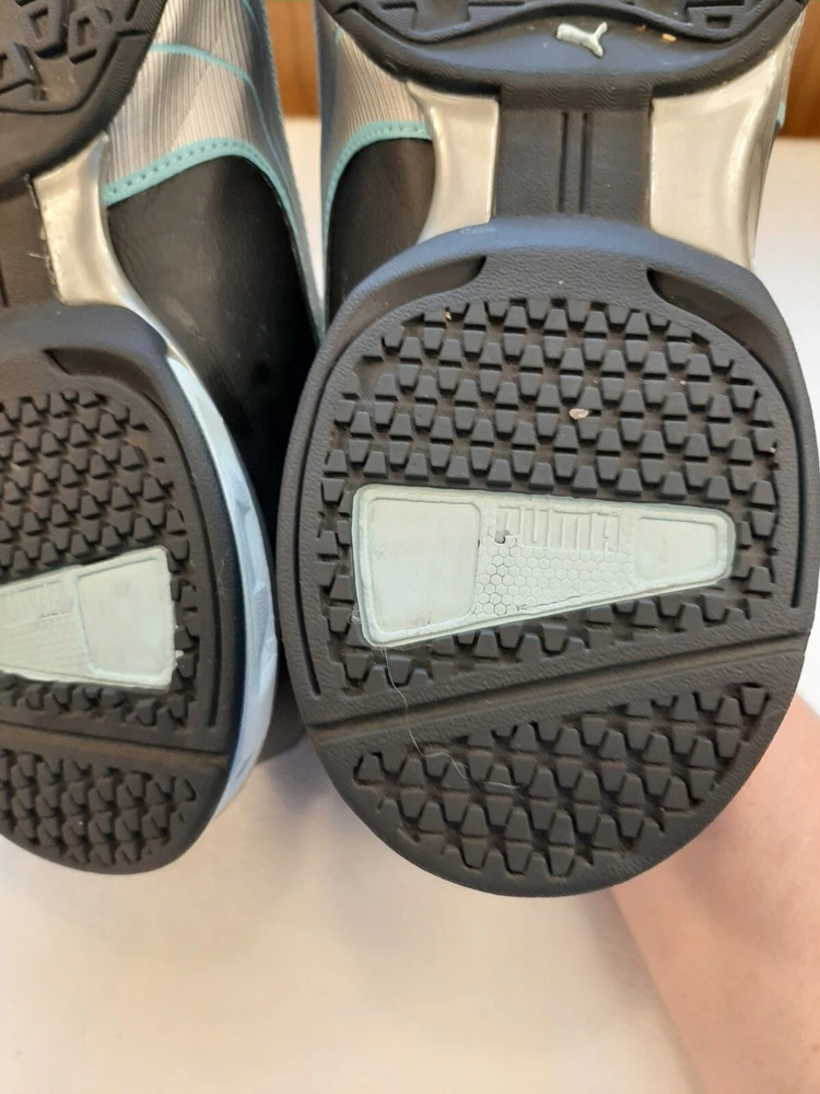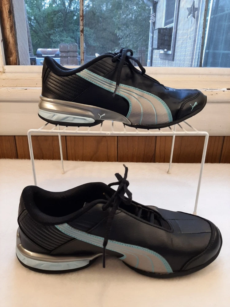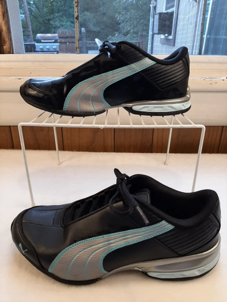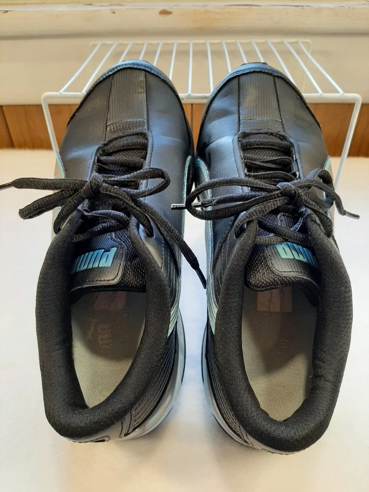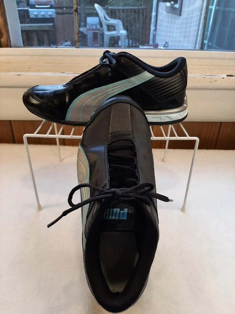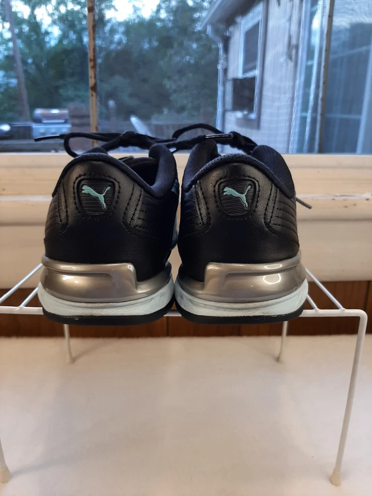 Puma Super Elevate Women's Running Shoes Black Teal Size 7 Comfy Sneakers In good pre-owned condition may show signs of wear from use/handling/storage/display. Please view all pics for condition/details/flaws/issues. SOLD AS IS The logo on inside of shoe is gone from wear. there is some wear to the toes and soles. There is marks/spots/dirt/debris please see photos 1-24, there maybe paint loss/sticker loss please see photos 1-24, there is lite discoloration please see photos 1-24, there are surface scratches to item please see photos 1-24, please see all photos for condition/issues/details.