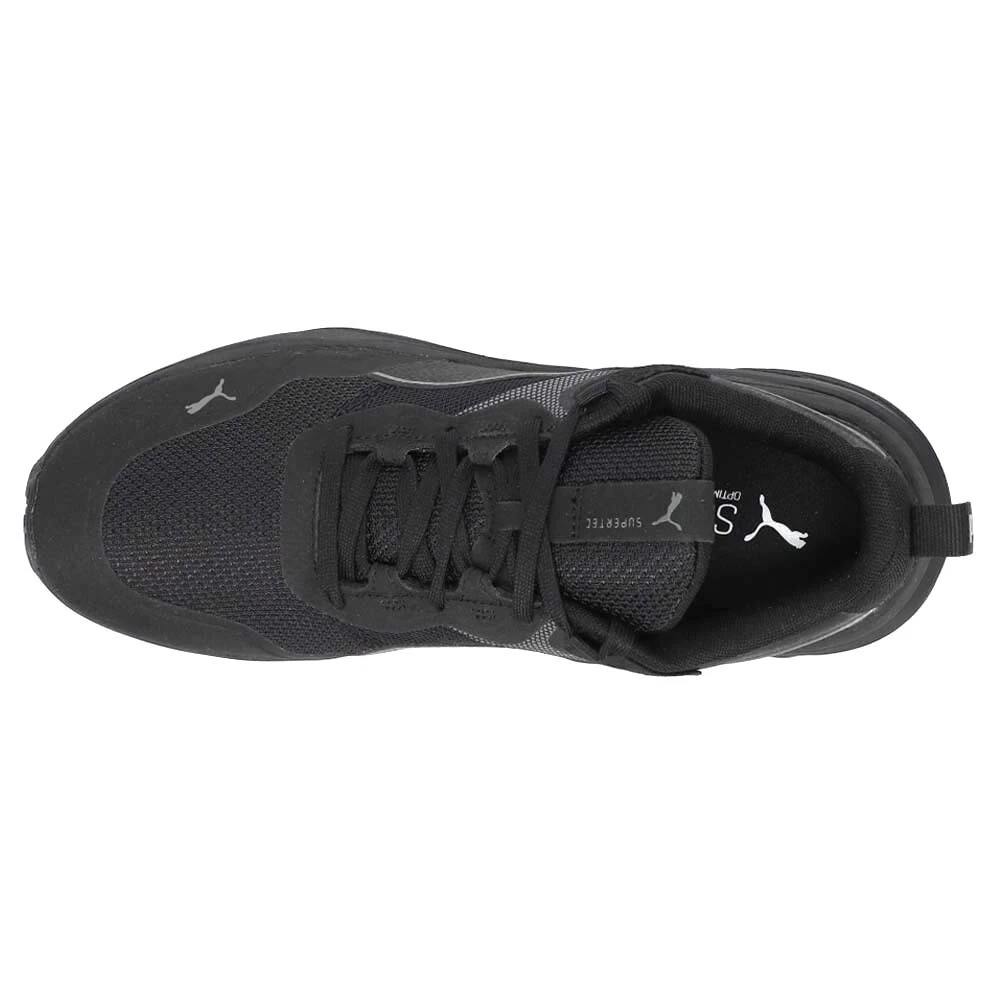Supertec Running Shoes Product Details Mesh upper Lace up closure Rubber outsole SoftFoam+ comfort sockliner Train comfortably and in style with the Supertec running shoes from puma. This shoes features a breathable mesh and synthetic upper with lace-up closure for a secure fit and the PUMA branding for added style. The SoftFoam+ comfort sockliner cushions your feet with every step, while the rubber outsole provides optimal traction and stability, perfect for working out and running. Additional Details Color: Black Occasion: Casual Gender: Mens Age: Adult Brand: Puma