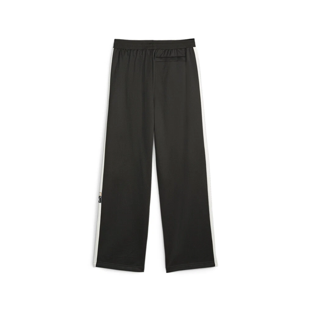 T7 Forward History Track Pants Product Details T7 panel inserts on side Elastic waistband with internal drawcord Two zip side pockets and a buttoned back pocket Relaxed fit 59% Polyester, 41% Cotton A PUMA original, the T7 track-inspired collection made a name for itself with 7cm signature stripes and quickly became as popular on city streets as it was on the training grounds. Hidden away in our archives, the suit has been faithfully replicated, and is just as iconic today as it was back then. We've updated the track pants with a wider leg and more relaxed fit. Additional Details Color: Black Occasion: Casual Gender: Mens Age: Adult Brand: Puma