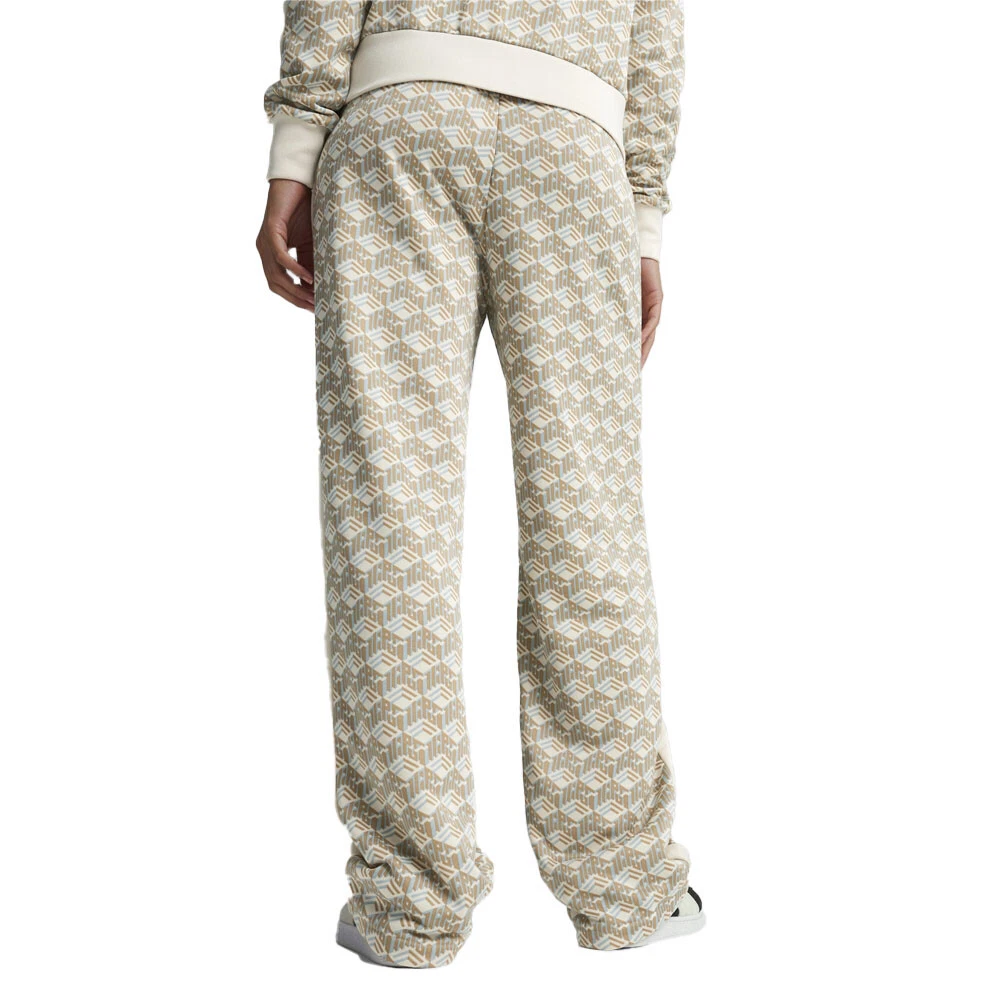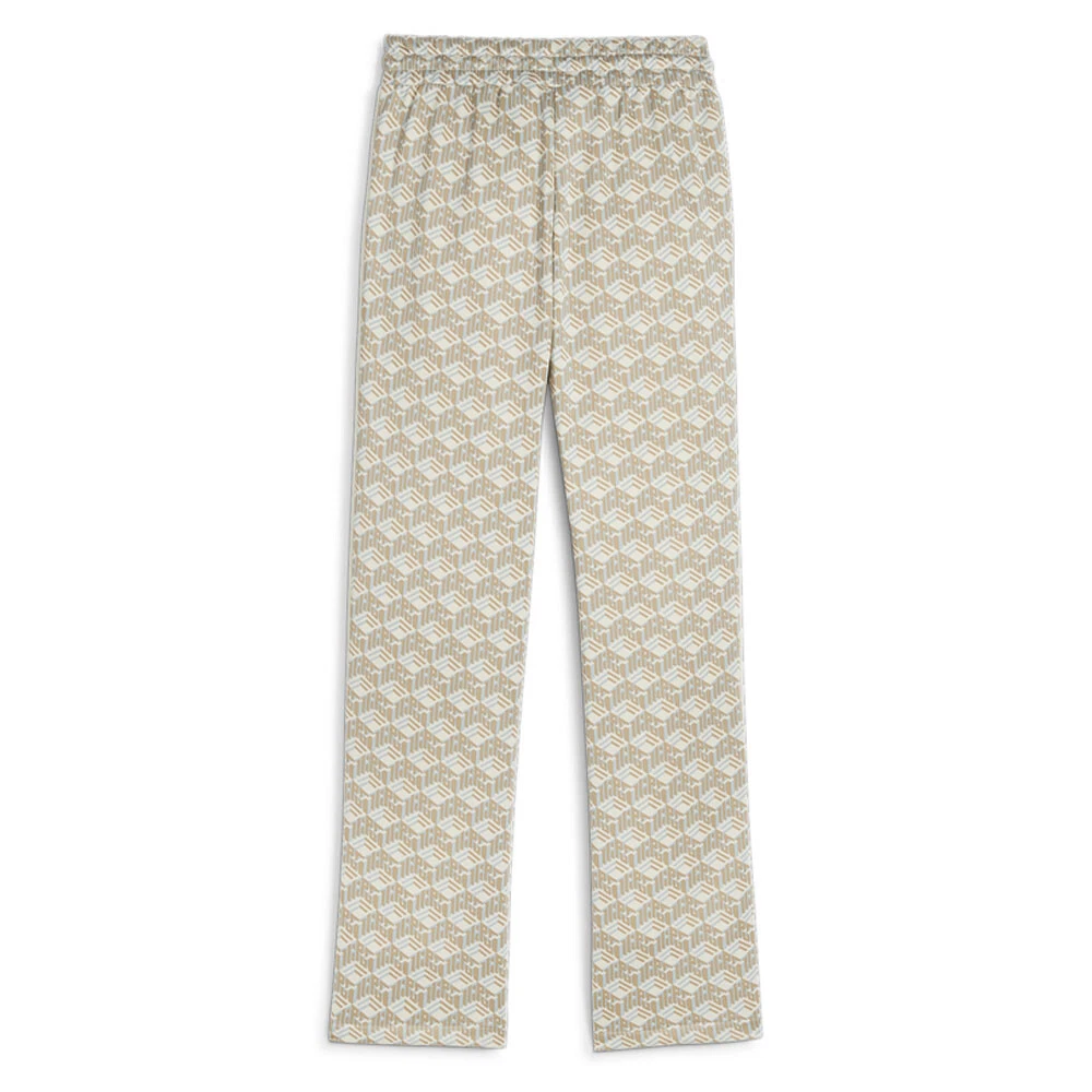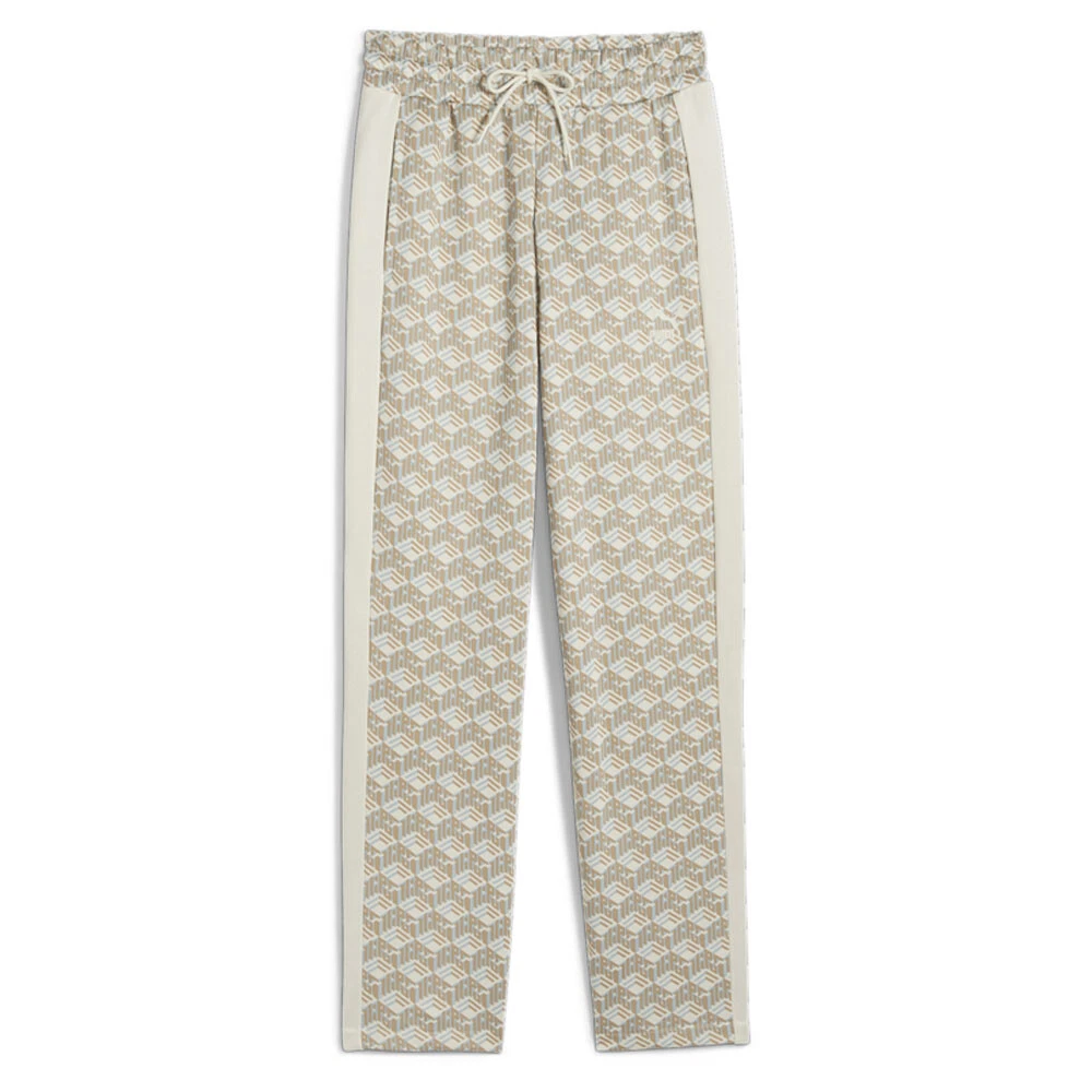 T7 Straight Leg Track Pants Product Details Comfort fit 320 grams per square meter, French terry Elastic waistband with external drawcords Side seam pockets T7 panel inserts Straight out of the '70s Puma Archives, the T7 gets a fresh update, and this time the OG track pants are reworked with a much more relaxed vibe. It features a looser fit than the OG track pants, and straight legs with open cuffs as well as an ornate all-over-print. Of course, the signature stripes are still on the sides. Additional Details Color: Beige Occasion: Casual Gender: Womens Age: Adult Brand: Puma