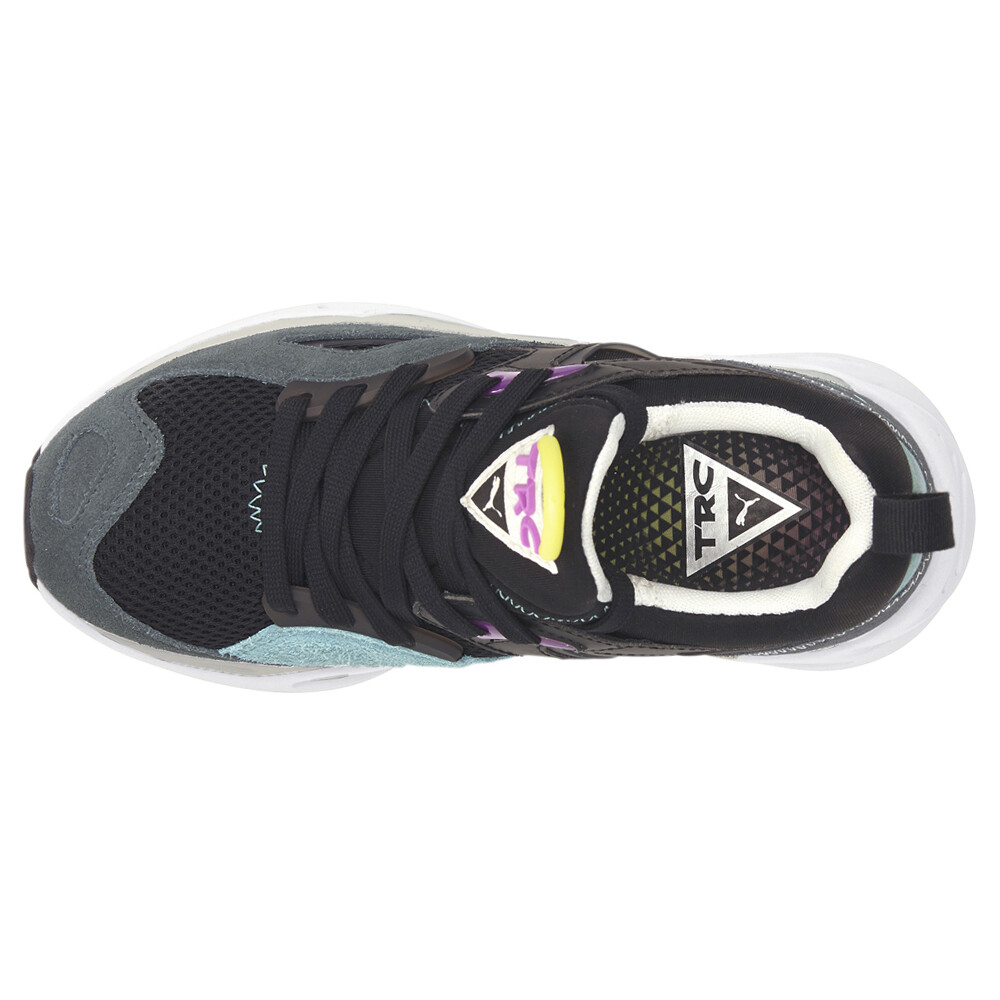 Trc Blaze Lace Up Sneakers (Big Kid) Product Details Mesh upper with suede overlays Lace up closure CMEVA midsole Non-marking rubber outsole Way back in the '90s, our Trinomic sneakers heralded a new age of shoe technology. The designs centered around three core elements: cushioning, flexibility and stability – represented by the iconic triangle logo. Three decades later, we're proud to introduce the TRC Blaze, inspired by the very same vintage running models. This time, an athletic mesh upper collides with suede overlays, Lycra features and TPU elements to form a chunky, cutting-edge silhouette. Additional Details Color: Black Occasion: Casual Gender: Boys Age: Youth Brand: Puma