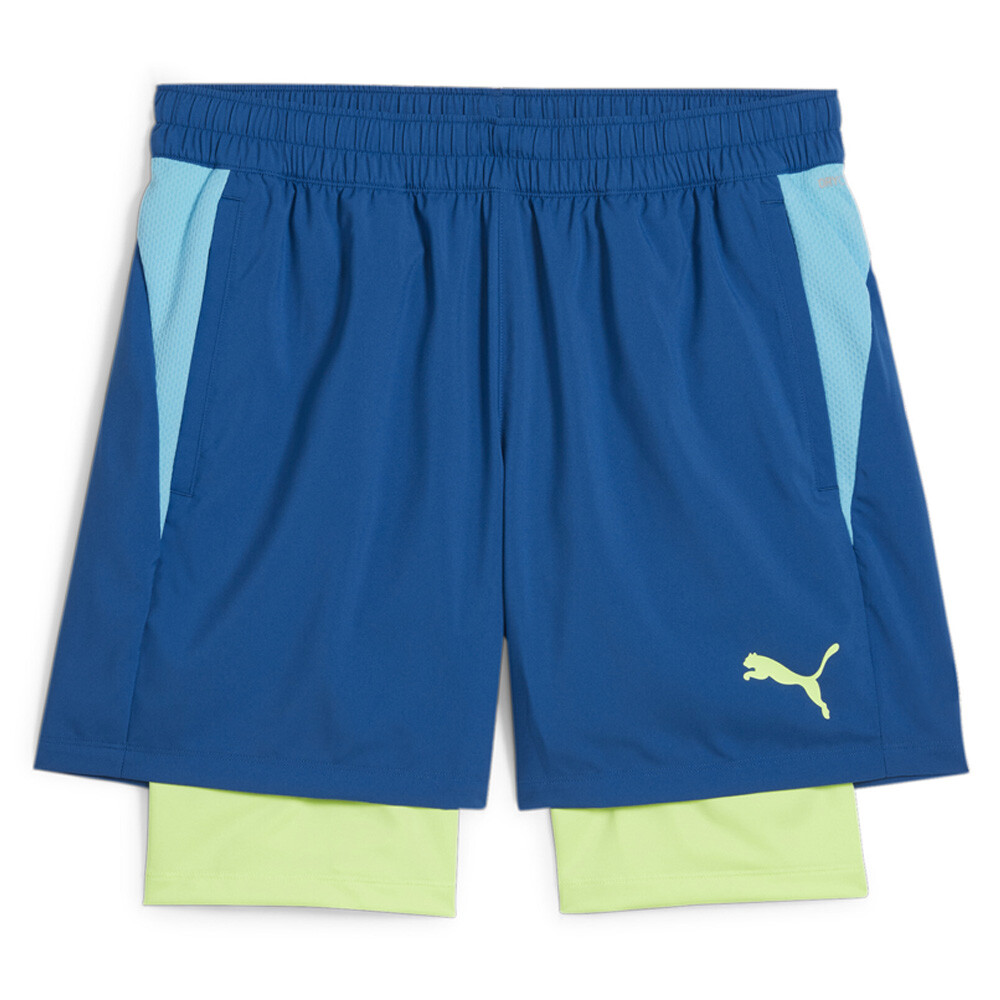 Individual Teamgoal Racquet Sports 2-in-1 Shorts Product Details Performance fit, medium rise Built-in compression shorts Above-knee length For use in pickleball, badminton, squash and racquetball sports 100% Polyester outer shorts, 89% Polyester/11% Elastane inner shorts Make the court yours in these 2-in-1 men's shorts. The performance-fit shorts have internal biker compression shorts and bold color blocks for a look that's active, so you can dominate your next match. Additional Details Color: Blue Occasion: Casual Gender: Mens Age: Adult Brand: Puma