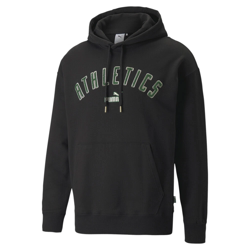 The Neverworn Pullover Hoodie Product Details Relaxed fit Hooded neckline with drawstrings for an adjustable fit Kangaroo pocket Embroidered graphic 100% cotton Take part in a fashion renaissance with the NeverWorn collection, a line of retro styles reinvigorated with a mix of distressed materials and new techniques for a truly authentic look. The NeverWorn Hoodie features a cozy fabrication and focal graphics sure to make it a fast favorite. Additional Details Color: Black Occasion: Casual Gender: Mens Age: Adult Brand: Puma