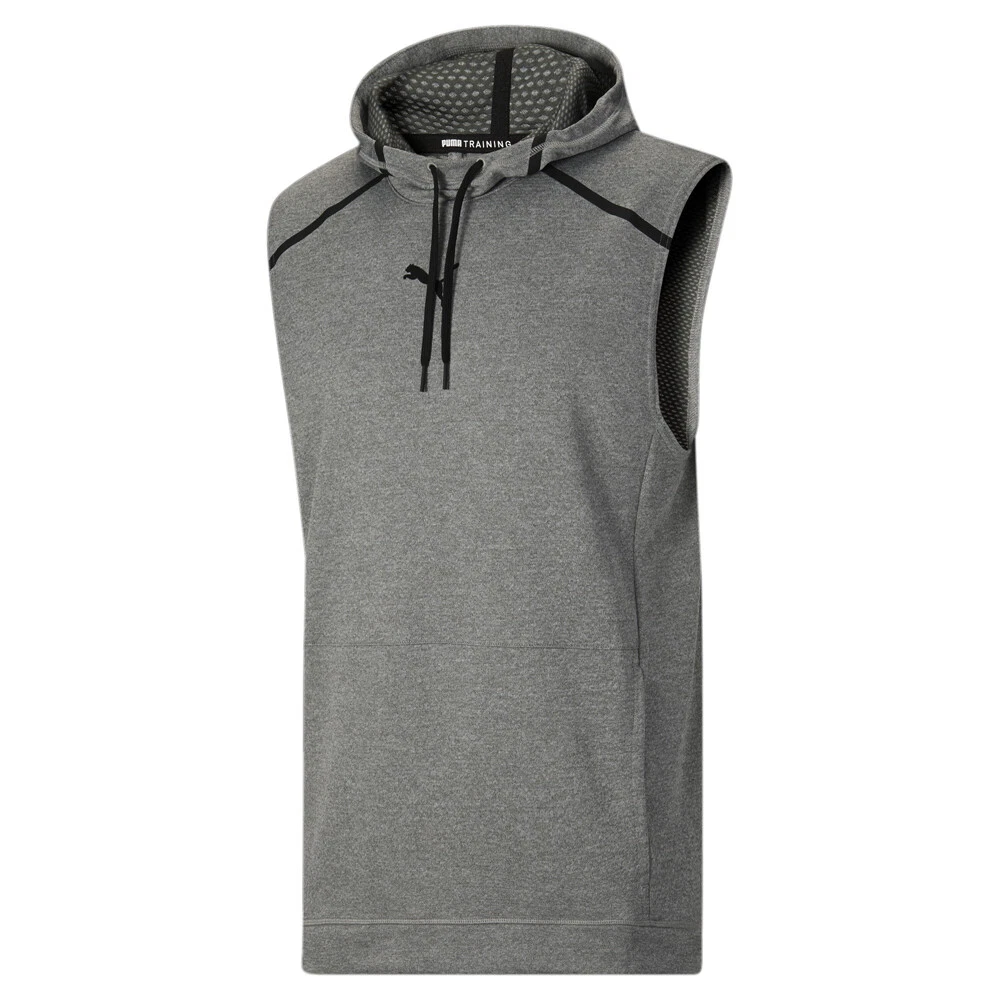 Train Tech Knit Sleeveless Hoodie Product Details Regular Fit Moisture-wicking fabric PUMA Cat Logo at chest 100% polyester Athletic style combines with winning performance in this striking sleeveless hoodie. This piece features faux bonded seams for an elevated feel, ergonomic cutlines for comfort and signature dryCELL technology to keep you cool and dry. Two side pockets offer useful storage and the hood contains a drawcord to personalised the fit. Additional Details Color: Grey Occasion: Casual Gender: Mens Age: Adult Brand: Puma