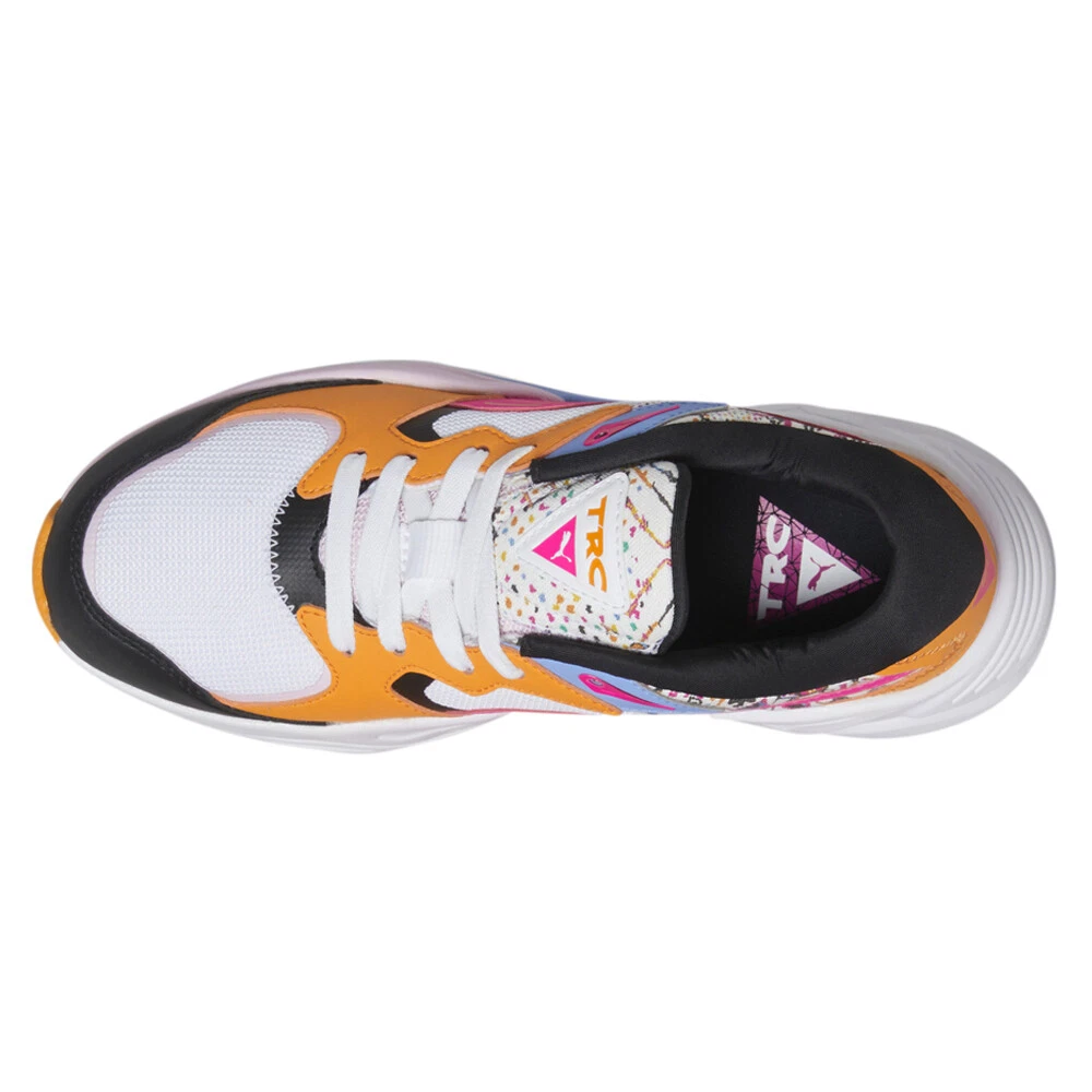 Trc Mira Artisan Graphic Lace Up Sneakers Product Details Mesh upper with synthetic overlays Lace up closure Cushioned footbed Rubber outsole The Women's Puma TRC Mira Artisan Casual Shoes are for the trendsetter in search of footwear with flavor. With the layering of premium materials, eye-grabbing pops of color, and artful accents, these Trinomic trainers are just what you need to touch up your look. Additional Details Color: White Occasion: Casual Gender: Womens Age: Adult Brand: Puma
