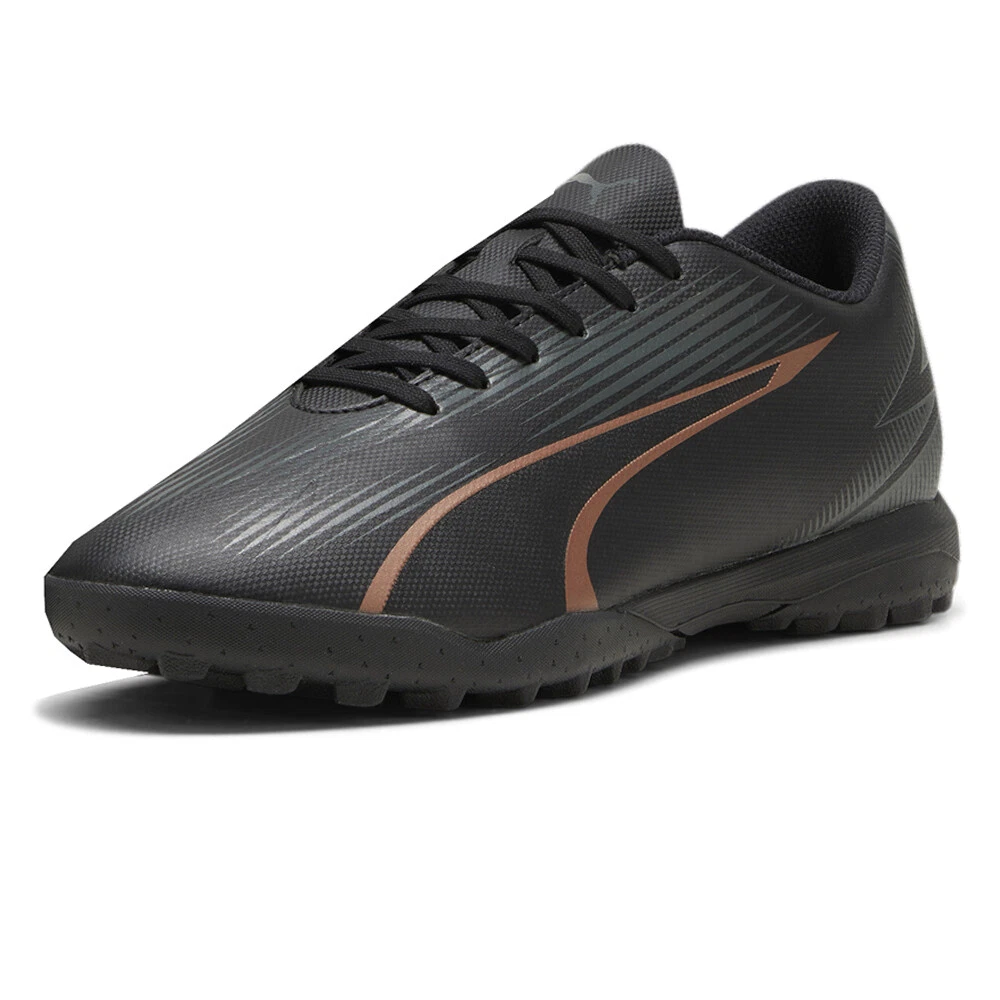 Ultra Play Turf Training Soccer Shoes Product Details Lightweight yet durable polyurethane upper enhanced with deboss and print details Regular tongue construction fits various foot shapes Low-profile multi-studded rubber outsole Suitable for use on hard natural surfaces and artificial grass (2G) Regular to narrow fit Just when they think you couldn’t get any faster – you do. The Ultra Play features a lightweight yet durable synthetic upper enhanced with deboss and print details. Ultra is Too Fast for Them. Additional Details Color: Black Occasion: Casual Gender: Mens Age: Adult Brand: Puma