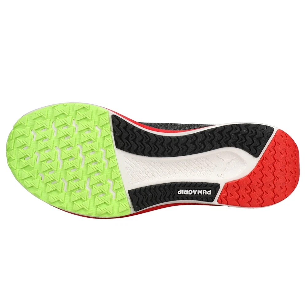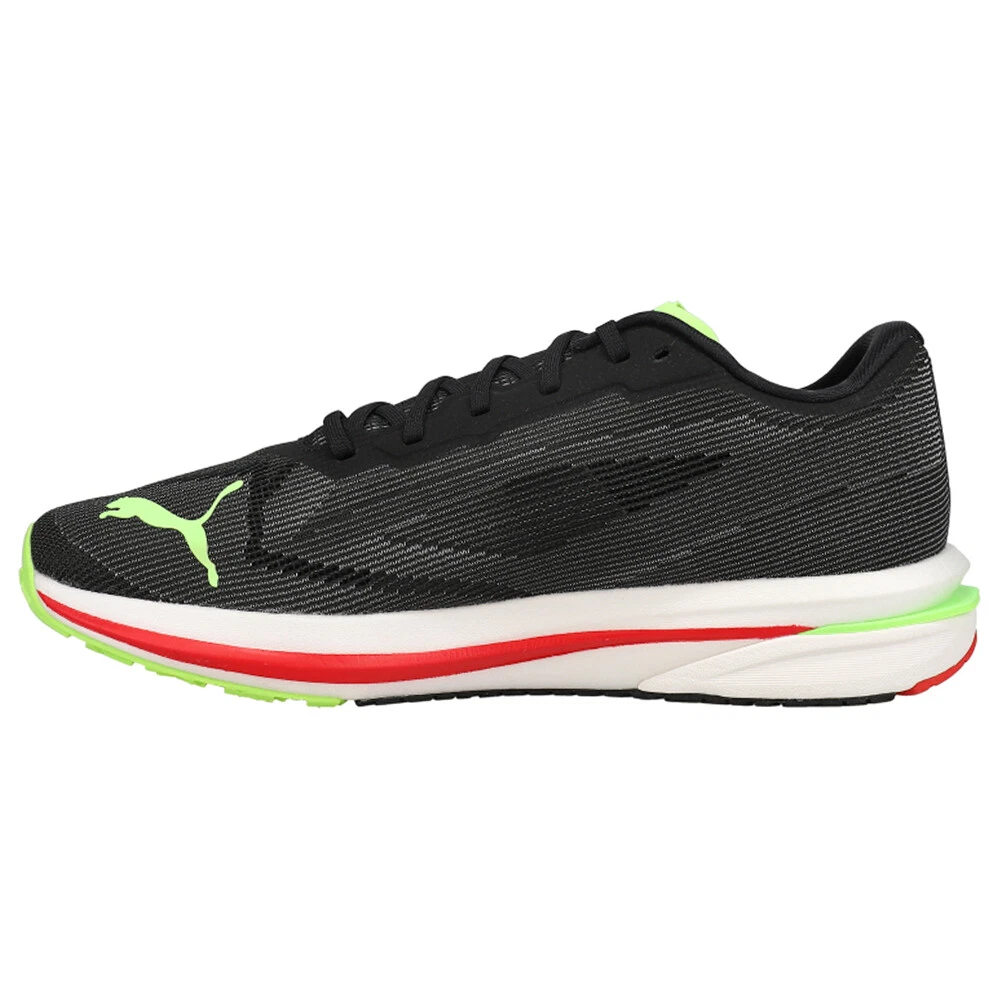 Velocity Nitro Lace Up Running Sneakers Product Details Mesh upper Full lace closure Reflective TPU heel piece for added stability Reflective PUMA Cat Logo print at lateral toe Velocity NITRO doesn’t pick favorites. Made for any distance, this anywhere, everywhere running shoe was made with NITRO foam for superior responsiveness and ultimate cushioning. A secure fit and a breathable, engineered mesh upper offer a comfortable ride for every run. To complete the package, a PUMA GRIP rubber outsole offers supreme traction for all surfaces and conditions. Additional Details Color: Black Occasion: Casual Gender: Mens Age: Adult Brand: Puma