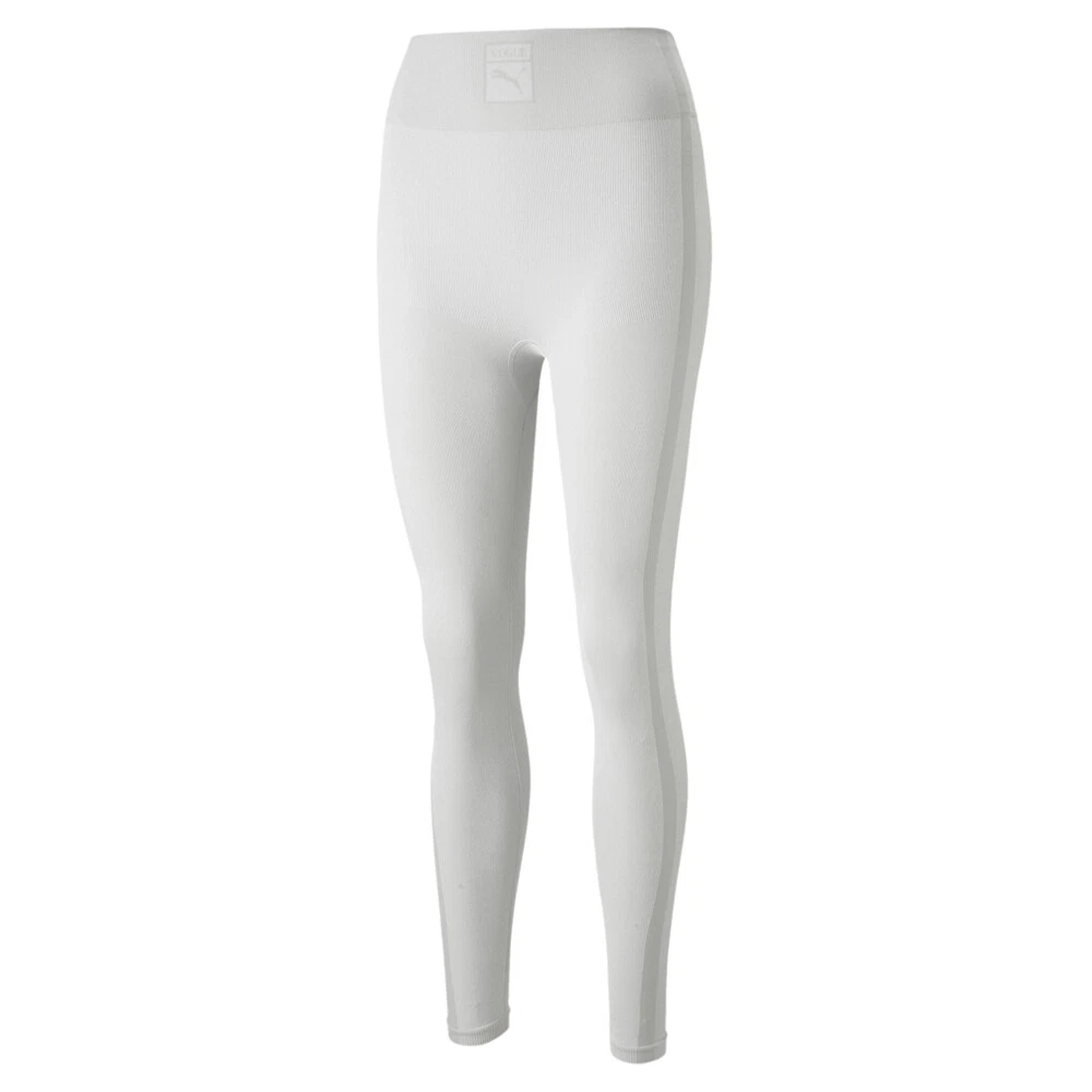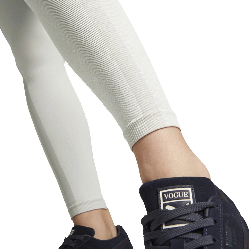 Vogue X Leggings Product Details Tight fit Engineered jacquard lines on sides Half-moon gusset for improved comfort 70% Nylon, 28% Polyester, 2% Elastane The PUMA x VOGUE collection stands where the gym meets the runway, and these leggings adopt this mantra to the max. Its tight and flexible construction harkens to PUMA’s athletic heritage, while the magazine’s name and jacquard lines deliver a pop of character beyond the playing field. Additional Details Color: Grey Occasion: Casual Gender: Womens Age: Adult Brand: Puma