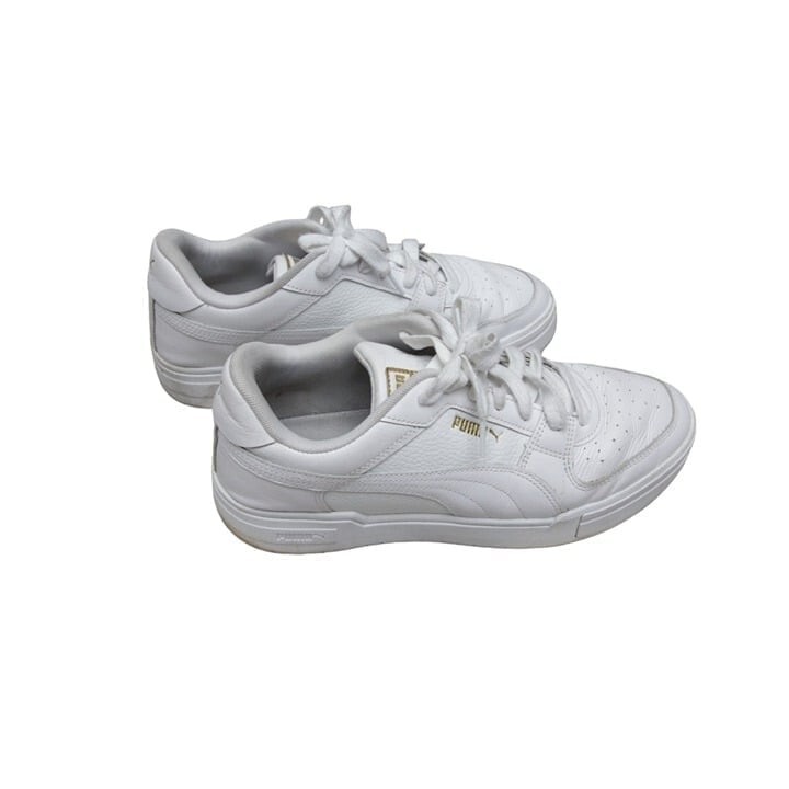 Puma White Low-Top Sneakers - Size 12 Men’s | Free Shipping Step into timeless style with these Puma white low-top sneakers. Featuring a clean leather design with subtle texture details and gold Puma branding, these kicks are perfect for casual wear with a touch of class. Size: US Men’s 12 Color: White with Gold Accents Condition: Gently used pre-owned – minor scuffs and wear (see photos), but still in great shape with plenty of life left Comfort: Padded collar and cushioned insole for all-day comfort Authentic Puma: Style code: 380190-01 Product Line: Puma Shuffle Fast & FREE Shipping Included Perfect for everyday wear, or adding a clean, sporty vibe to your look. Don’t miss out – these won’t last long! Ships fast with secure packaging. I’m clearing out some great stuff — check out my other listings for more shoes, apparel, and steals. Open to offers and happy to bundle!