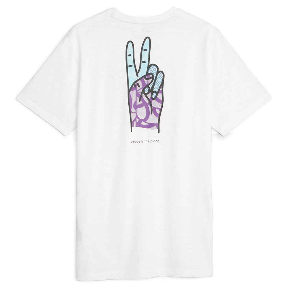 Peace Is The Place Crew Neck Short Sleeve Athletic T-Shirt x Ciele Product Details Regular length Puma x Ciele co-branding on left chest Colourful graphic on the back Flatlock stitching: for less friction and higher comfort during exercise Crew neck Puma has joined forces with the running house, Ciele, to present a new collection that's defiantly modern in construction, feel, and performance – timeless in style. This collaborative capsule promotes mental health awareness and supports the Trevor Project. Decorated with graphics on the back and a co-branded logo on the chest, this tee features moisture wicking technology to keep you dry and comfortable. Flatlock stitching is added for extra comfort during your running sessions. Additional Details Color: White Occasion: Casual Gender: Mens Age: Adult Brand: Puma