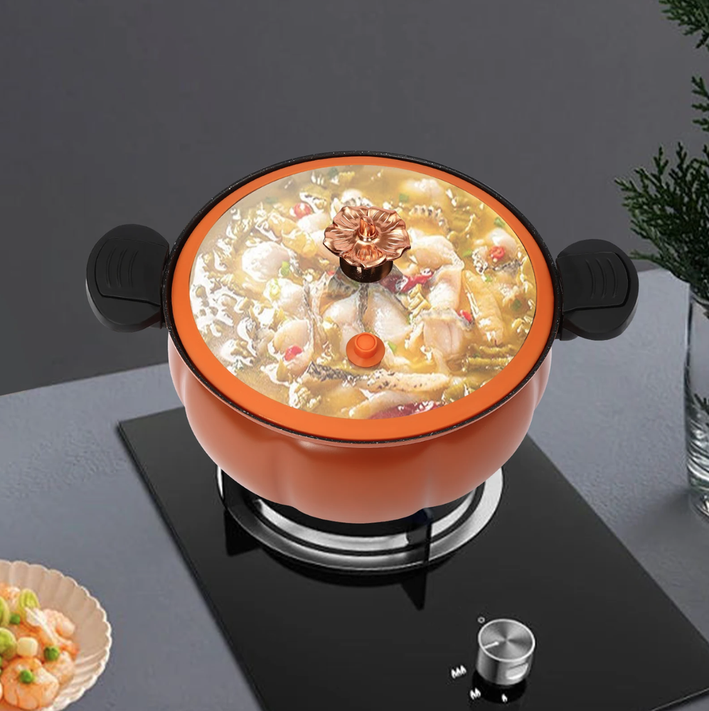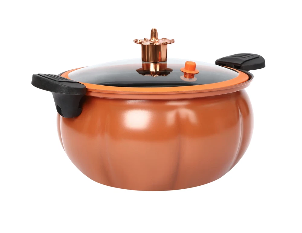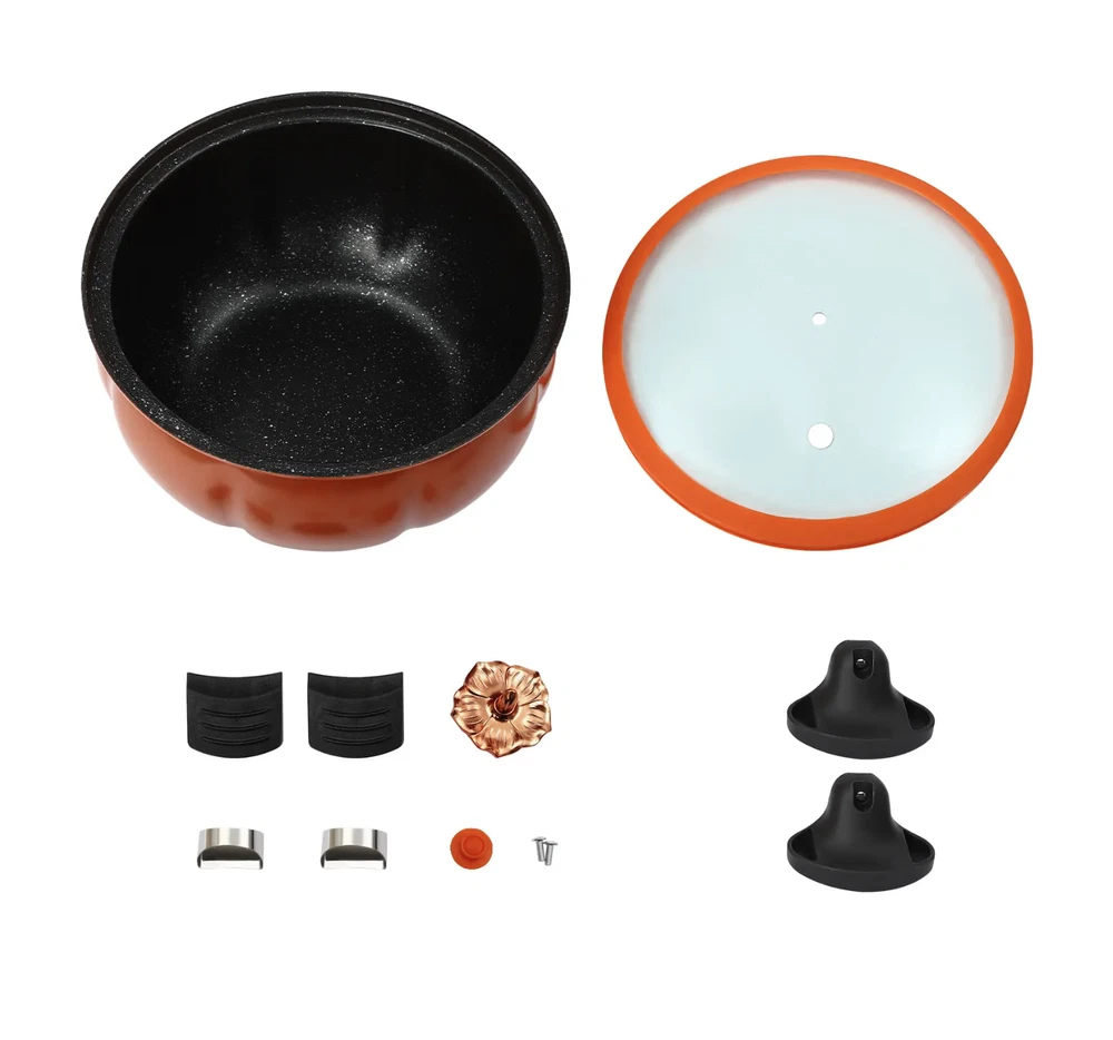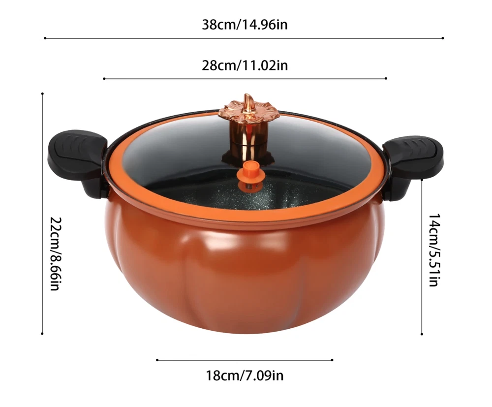 Add seasonal charm and functionality to your kitchen with this Pumpkin Cast Iron Dutch Oven Enameled Cocotte , crafted in a vibrant orange color with a whimsical pumpkin shape. With a generous 8L (2.11 gallon) capacity, this eye-catching pot is perfect for stewing, boiling, frying, and more—ideal for everything from hearty soups to holiday feasts. Made of high-quality refined iron with a maifan stone non-stick coating and spray-painting process, this modern Dutch oven is built for both beauty and performance. Its quick-heating capabilities, stylish appearance, and easy-clean features make it a must-have for your cookware collection or a thoughtful gift for the cooking enthusiast in your life. Key Features Sturdy and Durable : Crafted from refined iron with a non-stick maifan stone coating and corrosion-resistant finish. Large Capacity : 8L (2.11 gal) volume—ideal for sharing meals with family and friends. Quick & Even Heating : Flat bottom and premium construction ensure fast, consistent heat distribution. Safe & Efficient : Less pressure than traditional pressure cookers and safe lid opening during cooking. Modern Pumpkin Design : Unique orange pumpkin shape brings a stylish, festive flair to your kitchen. Easy to Clean : Non-stick surface allows for effortless cleanup with minimal water and detergent. Thoughtful Gift Idea : Perfect for holidays, housewarmings, or any cooking enthusiast. Simple Assembly : Comes with all accessories needed for easy setup and use. Specifications Color : Orange Material : Refined Iron Shape : Pumpkin Style : Modern Non-Stick Coating : Maifan Stone Process : Spray Painting Capacity : 8L / 2.11 Gallons Product Size (L×H) : 38×22cm / 14.96×8.66in Pot Diameter : 28cm / 11.02in Bottom Diameter : 18cm / 7.09in Pot Depth : 14cm / 5.51in Package Size : 28×27.9×16cm / 11.02×10.98×6.3in Gross Weight : 1.5kg / 3.3lbs Net Weight : 1.4kg / 3.08lbs Dishwasher Safe : No Assembly Required : Yes Package Includes 1 × Pumpkin Dutch Oven 1 × Lid 1 × Lid Handle 2 × Side Handles 1 × Venting Valve 1 × English Manual Other Accessories for Assembly Application Perfect for home kitchens, dormitories, apartments, or cooking schools. Suitable for open-flame heating and gas stovetops. Important Notes For household use only. Before first use, boil water with a drop of detergent on low heat for 1–3 minutes, then rinse and dry. Clean thoroughly after use to prevent oil buildup; warm water cleaning is recommended. Use a sponge cloth (not included) to avoid damaging the non-stick coating. Manual measurement may result in 1–3cm variance. Actual colors may vary slightly due to lighting and display settings.