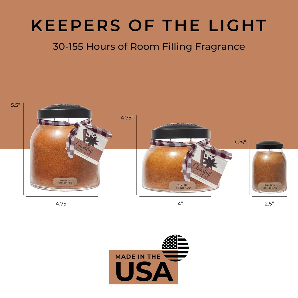 A Cheerful Giver - Pumpkin Cornbread - 22oz Mama Scented Candle Jar with Lid - Keepers of The Light - 125 Hours of Burn Time, Gift for Women, Orange CANDLE WITH GLASS HOLDER: Fill your entire house with the delectable charm of home sweet home embodied in our strong scented candles. Create a memorable experience that everyone will enjoy with the delicate aromatic blend of pumpkin & cornmeal lightly spiced with cinnamon, cloves & nutmeg. FARMHOUSE DECOR: All of our seasonal candle jars are proudly made in the USA and are a wonderful addition to any environment. Elevate your harvest or winter decorations by adding this festive warmth to your living room, kitchen, or outdoor patio. AROMATHERAPY CANDLE: These heartwarming long burning candles are crafted with a double wick to increase burn times and decrease soot. The balance of wax to wick ensures that the candle will burn clean, guaranteeing hours of long-lasting fragrance. GIFTS IDEAS FOR EVERY OCCASION: Give that special someone a gift to remember with these decorative candles. Delight your family and friends with the enticing blend of our heavenly scents captured in these one-of-a-kind candles. A CHEERFUL GIVER: A Cheerful Giver was established in 1991 and is a business dedicated to creating and producing innovative and quality products at an affordable price. We strive for excellence and pride ourselves on giving back to the community. A Cheerful Giver was established in 1991 and is a small family business dedicated to creating and producing innovative and quality products at an affordable price. Our products are proudly made in the USA, and we strive for excellence in everything we do, including continuing to give back to the community. These lovely candles will fill your home with the warmth and comfort of the season, perfect for any room. All of our beautiful candles are created with a double wick for increased and even burn times while decreasing soot. This ensures a balance between the wax and wick and guarantees that the candle will burn clean, giving you hours of lasting fragrance. Are you looking for the ideal housewarming gift? Our candles are a wonderful choice for any celebration. Give that special someone in your life a time to remember with these long lasting candles, sure to create that special moment in time. Be sure to spread the joy of the season with the Pumpkin Cornbread captured in these one-of-a-kind jars. Whatever the occasion we have you covered, our products make exceptional year-round gifts for all of your family and friends. Shipping We offer FREE shipping on all orders! We ship within Three business days of payment, usually sooner. We use a selection of shipping services such as UPS, FedEx, USPS etc., unable to choose a carrier. We only ship to the lower 48 states, no APO/FPO addresses or PO Boxes allowed. Sellers generally can’t change the shipping address that you provided at checkout. Local pickups and combined shipping options are not provided at this time. International buyers - please note: Import duties, taxes, and charges aren't included in the item price or postage cost. These charges are the buyer's responsibility. Return You can return a product for up to 30 days from the date you bought it by using the seller's FREE RETURN LABEL only. Any product you return must be in the same condition you received it and in the original packaging. International buyers - Rejection and return of the product requires the buyer to pay all shipping and return costs. Please return with the reason "Order mistake" or "Changed my mind" or "Does not fit" for a refund, which would be greatly appreciated. If the buyer wishes to return the items for a refund or replacement, please contact the seller to obtain a free return label. The refund or replacement will be processed using the tracking number of the return label, which will be provided solely by the seller. Other methods of return that have not been approved by the seller will not be processed for a refund or replacement. Payment We accept payment by any of the following methods: eBay Manage Payment Please pay as soon as possible after winning an auction, as that will allow us to post your item to you sooner! Feedback Customer satisfaction is very important to us. If you have any problem with your order, please contact us and we will do our best to make you satisfied. Please be aware that our products are stored and fulfilled by third-party warehouses and manufacturers across the United States (also known as third-party fulfillment or product sourcing). These companies are completely trustworthy, and we are confident in entrusting all of our valuable items to them for the safety and best delivery system for our store. Contact Us If you have any queries, please contact us via ebay. We usually respond within 24 hours on weekdays. Please visit our eBay store to check out other items for sale! Thank you for shopping at our store.