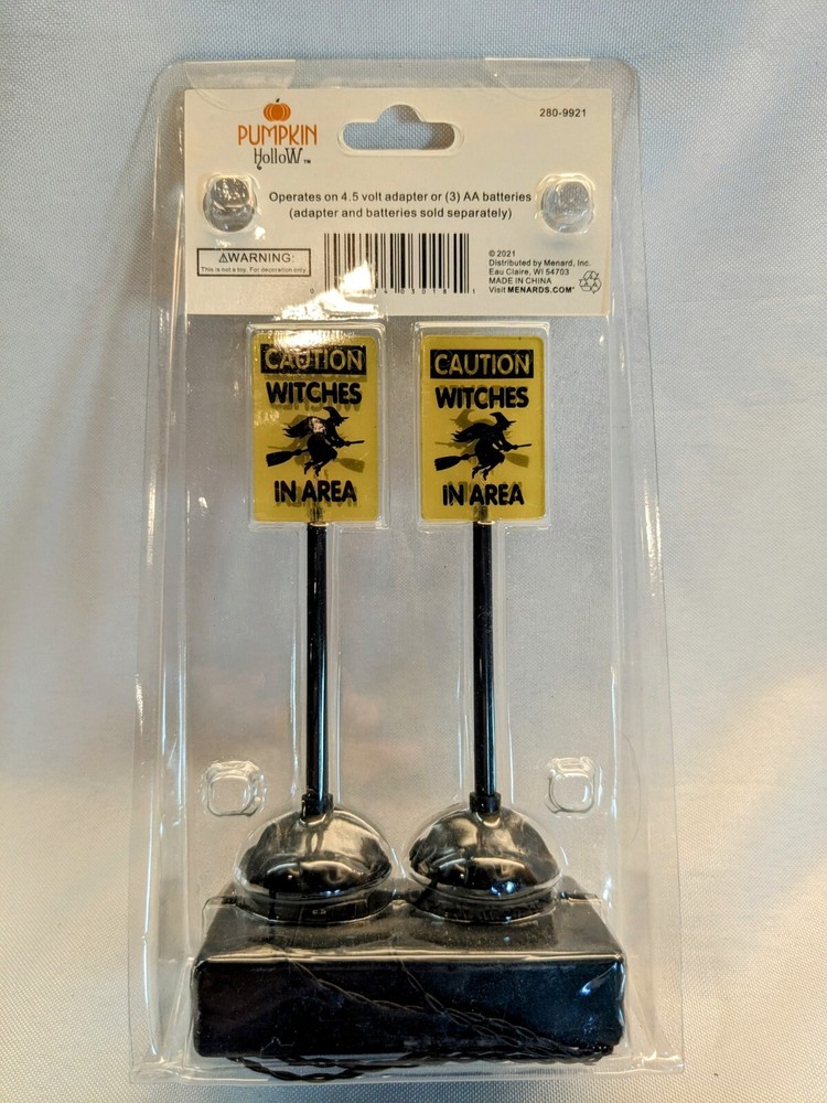 Pumpkin Hollow Spooky Town Halloween Village Witch Street Crossing Light Up Sign. This is new in an unopened factory sealed package. First photo is a factory photo. No returns. See pictures for item. I have many lemax items listed and will combine shipping if purchased at the same time. Just purchase all items in the cart but don't pay. I will send you an invoice with combined shipping than you can pay. Purchasing many items together saves big $ on shipping. Message me with any questions.