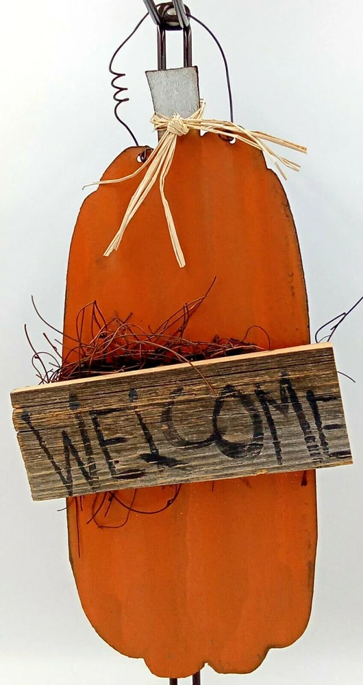 Pumpkin Metal Wood Sign Welcome Wire Hanger Orange Black Raffia Tie Branch 19.5". This is handmade in the USA. Measurements are approximately from the top of the hanger to the bottom of the sign 19.5" long x 10" wide. The pumpkin is made out of galvanized metal. The "Welcome" sentiment is in black letters on rustic aged looking wood. Branches are added behind the wood welcome sign to add to the rustic look. Raffia is tied around the metal stem. Condition is Brand New/Unused. Please check out the photos in this listing for further information. If you have any questions or concerns, please contact us. Thank you for your support! Please check out The Burly Owl Lady eBay store for more home decor goodies! Shipped USPS. We ship vintage and new items. We carefully pack with care to ensure the safety of each item. We do not pass these packaging costs onto the buyer. Furthermore, we do not charge any extra fees for handling. We only charge for the USPS shipping charge. We do monitor shipping prices frequently. In most cases, we do find the USPS to be the most inexpensive way to ship our products. We try to be as detailed as we possibly can in our photos and descriptions. We try to mention any imperfections in our vintage items. We may miss things from time to time or our photos may not be enough clarification for you to see the item. We will be glad to answer any questions or send you more photos. If at any time, you have a question or issue, please contact us immediately. We will contact you within 24 hours. We want to make sure you have a good experience in purchasing any of the products. If you are happy with your purchase, please leave feedback. It will help us to grow and offer more great items in our store! Thank you for your interest in one of the many products in our eBay store! Renee Burly Owl Lady